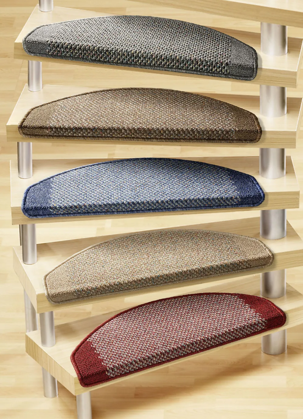 Kombistarke Stufenmatten. Mit rutschhemmender Latex-Rückseite. Trittmaß 23,5×65 cm. Aus 90% Polypropylen und 10% Polyamid.