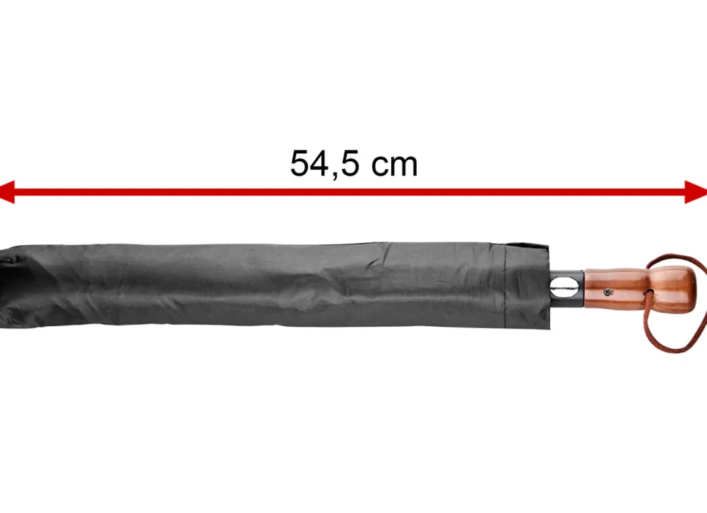 Schirm aus reißfestem Polyester, mit Teleskopstiel. Öffnet auf Knopfdruck