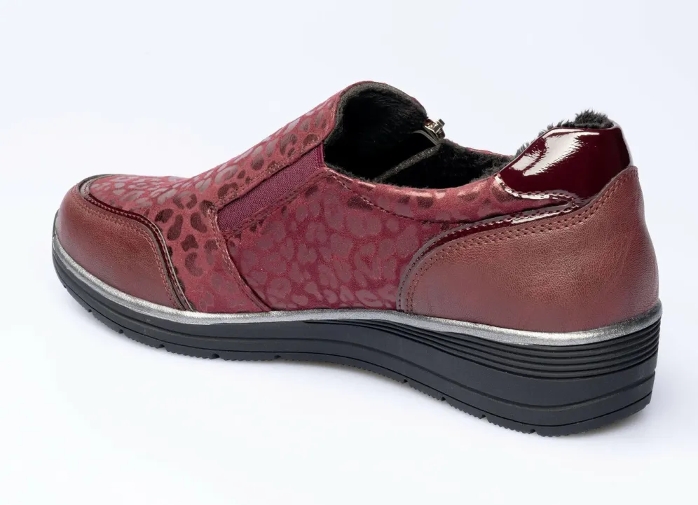 Stylischer Halbschuh im Leo-Look in Bordeaux und in Größe 38.