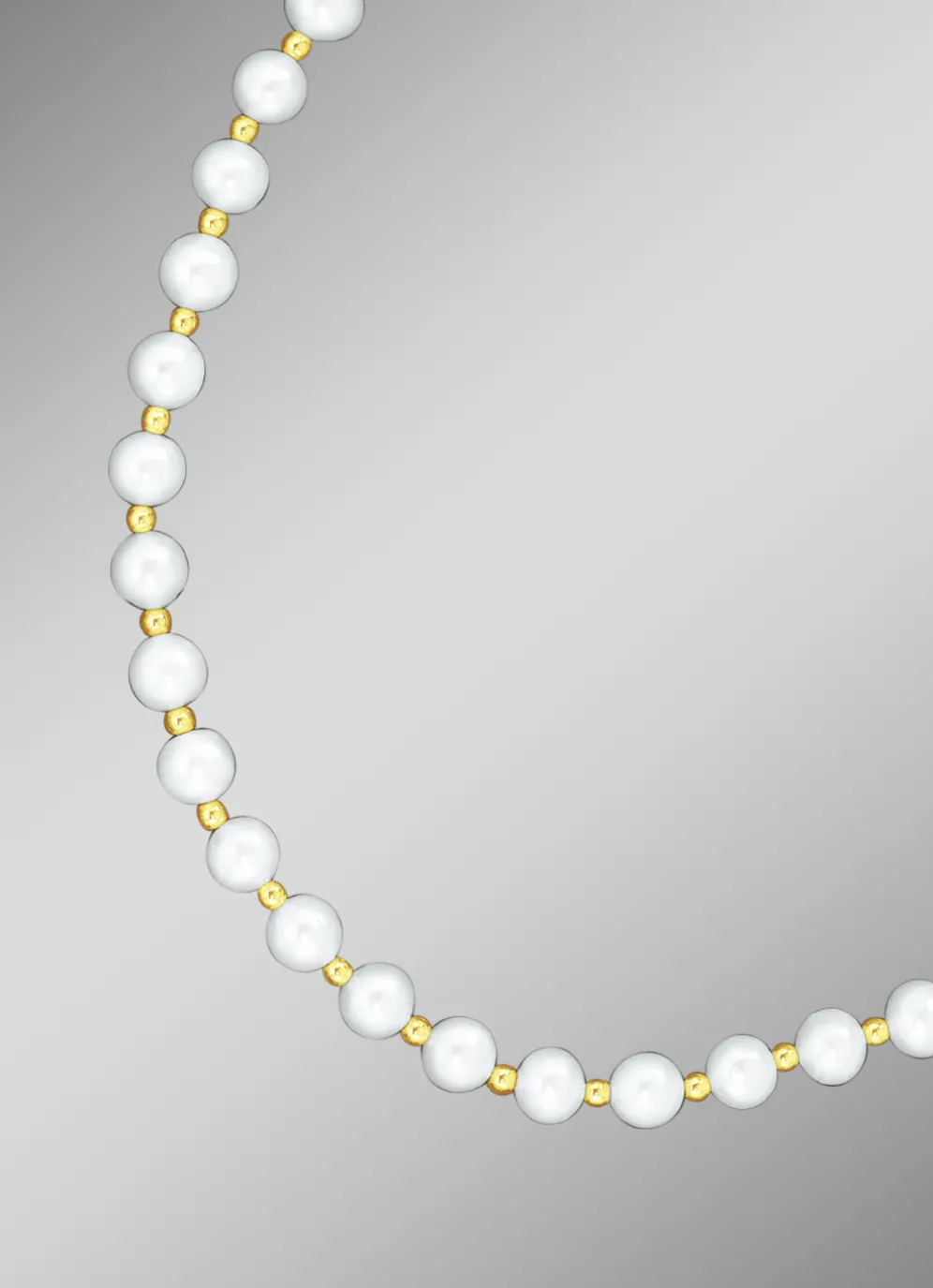 Süßwasser-Zuchtperlkette in der Länge von 45 cm und in der Legierung Gold 585/- fein.