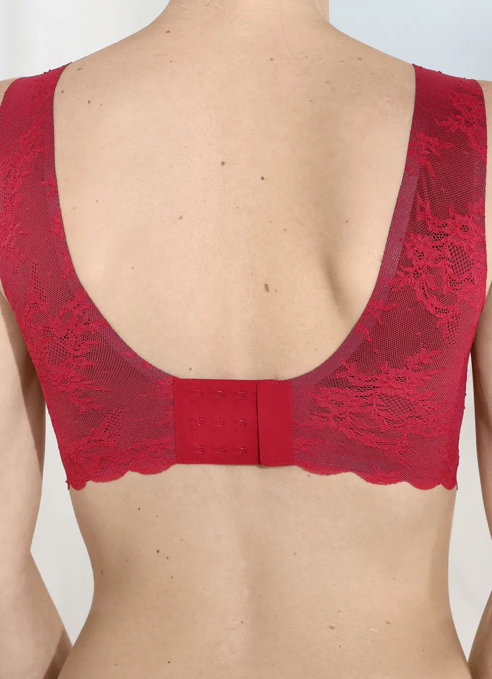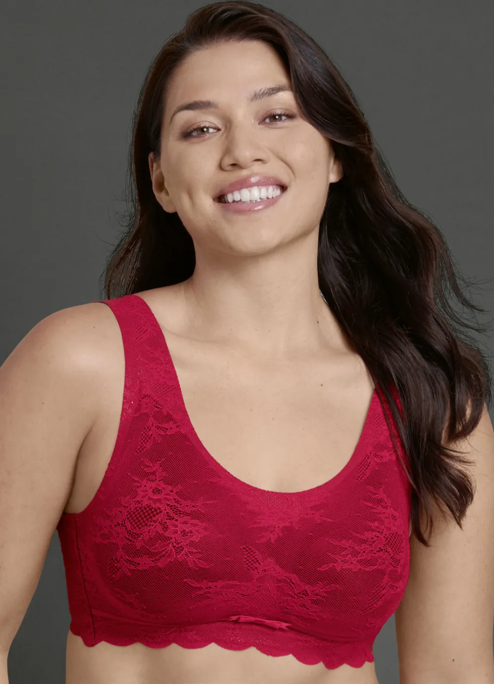 Superbequemer Anita BH aus elastischer Spitze in Rot und in Größe XL.