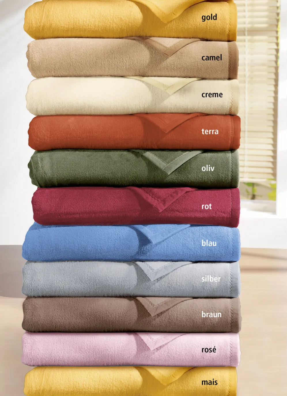 Supersofte Schlafdecke von BORBO, mit Veloursband-Einfassung. Bewährte und kuschelweiche Qualität: 100% Baumwolle. Waschbar bis 30 °C.
