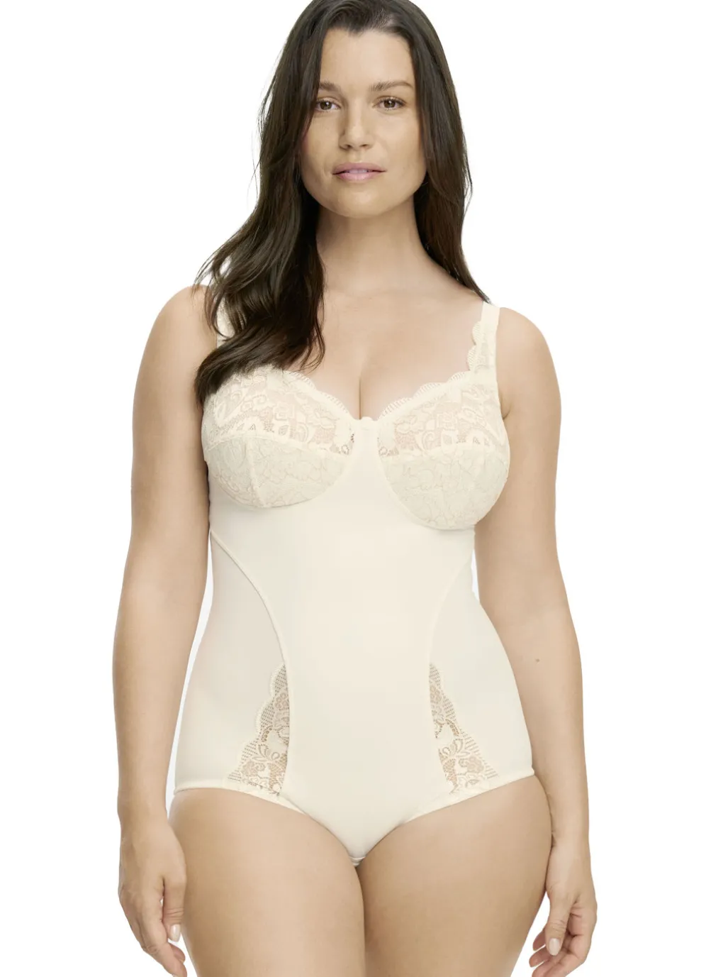 Sanft formendes Hosenkorselett von „Susa“, mit Elastikspitze im Vorderteil, unterlegten Untercups, Verstärkung vorne, verstellbaren Stretchträgern sowie Hakenverschluss und Baumwolleinlage im Schritt.