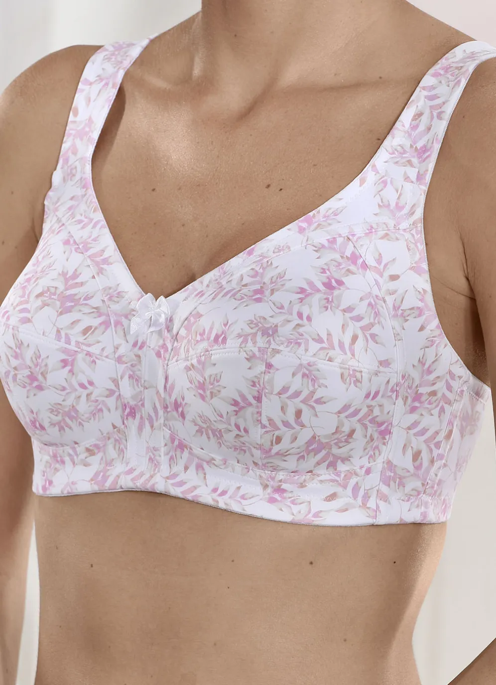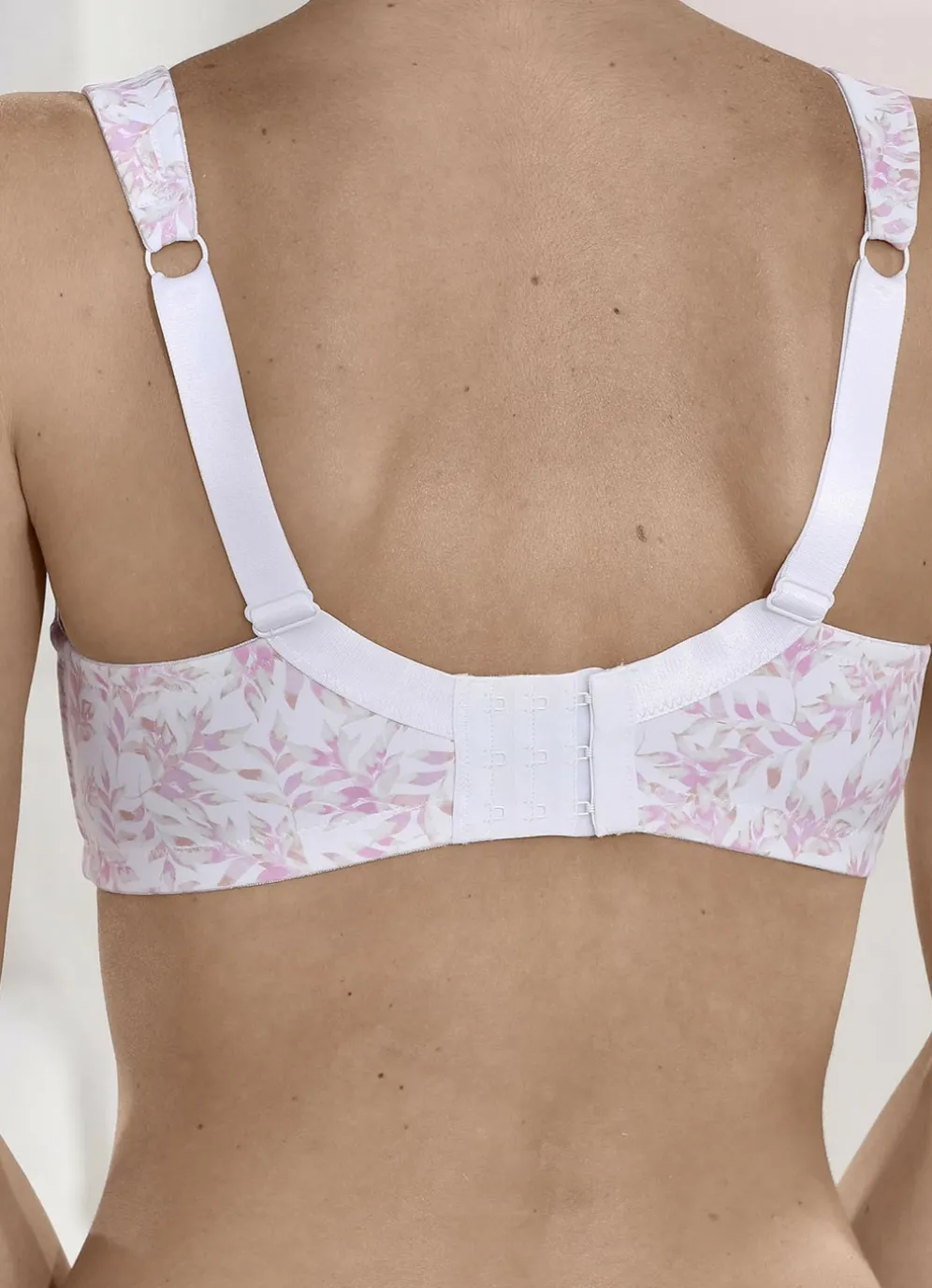 Susa Zweierpack BH mit verstärktem Vorder- und Rückteil in Cup F, in 1X Weiß-Rosè-Puder Bedruckt, 1X Puder sowie in Größe 95.