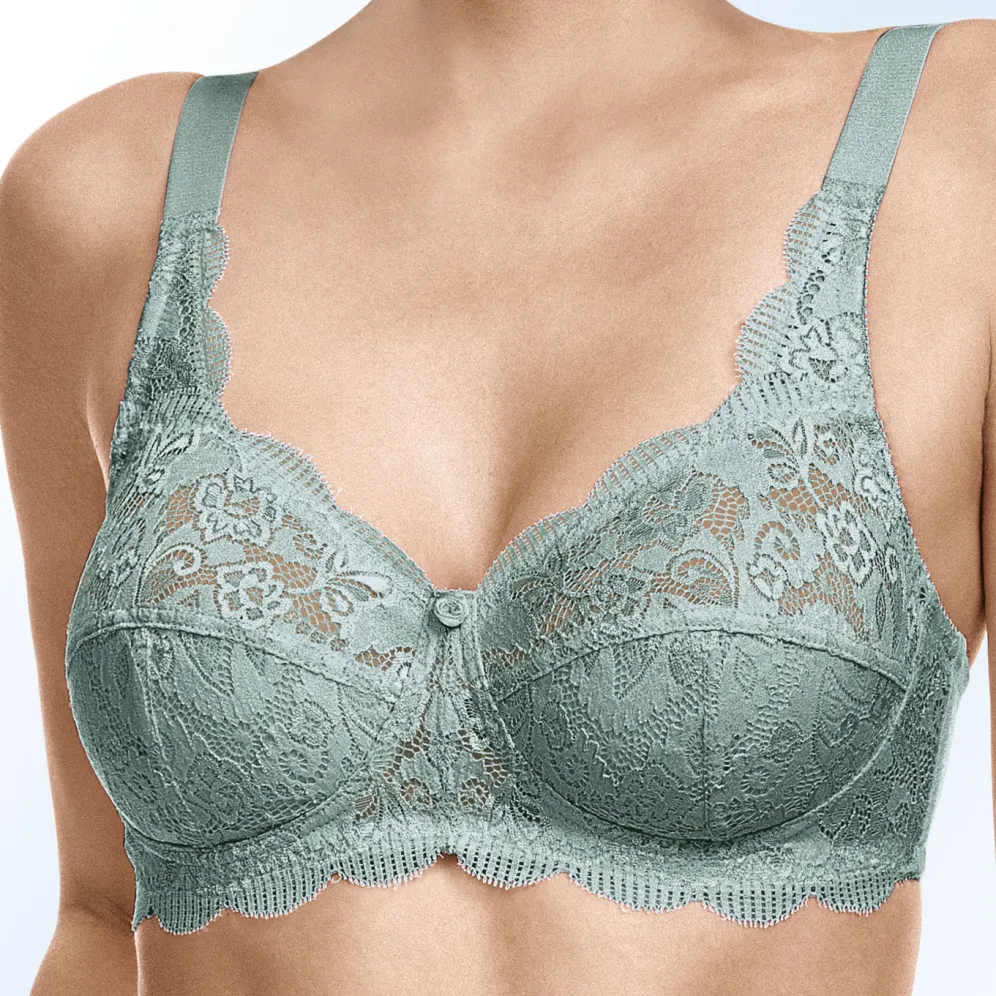 BH von „Susa“, mit Vorderteil aus zarter Elastikspitze, unterlegten Untercups, seitlichen Stützstäbchen sowie verstellbaren Stretchträgern.