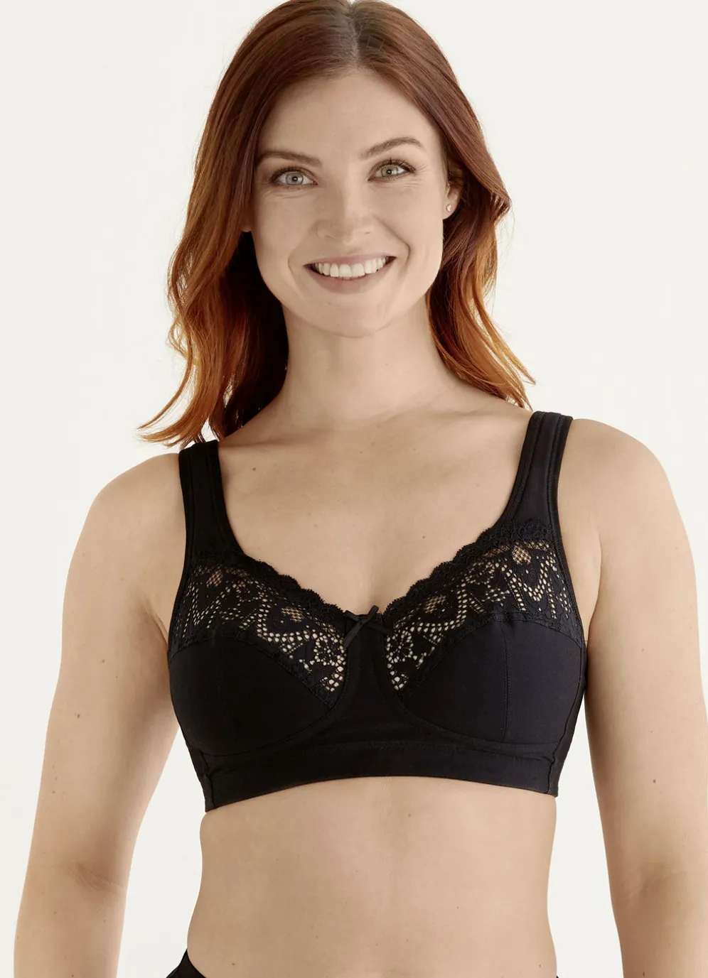 Swegmark of Sweden BH mit Elastikspitze in Cup B, in Schwarz sowie in Größe 100.