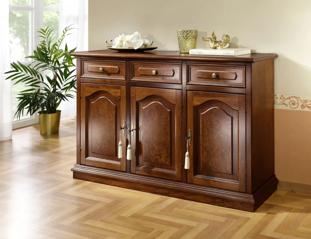 Herrliche, teilmassive Möbelserie mit Echtholzfurnier. Stellen Sie sich ganz individuell Ihre Einrichtung zusammen und kombinieren Sie dabei niedrige und höhere Elemente ganz nach Wunsch. Mit wunderschönem Wurzelholzdekor an den Fronten sowie Schlüssel mit herrlich nostalgischem Quasten-Anhänger. Die Lieferung erfolgt aufgebaut.