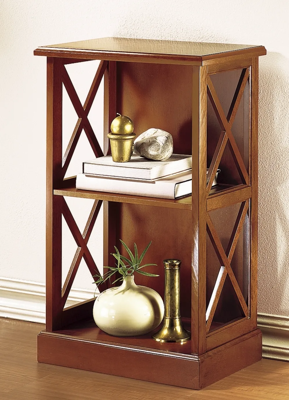 Teilmassives Regal mit dekorativen Kreuzsprossen