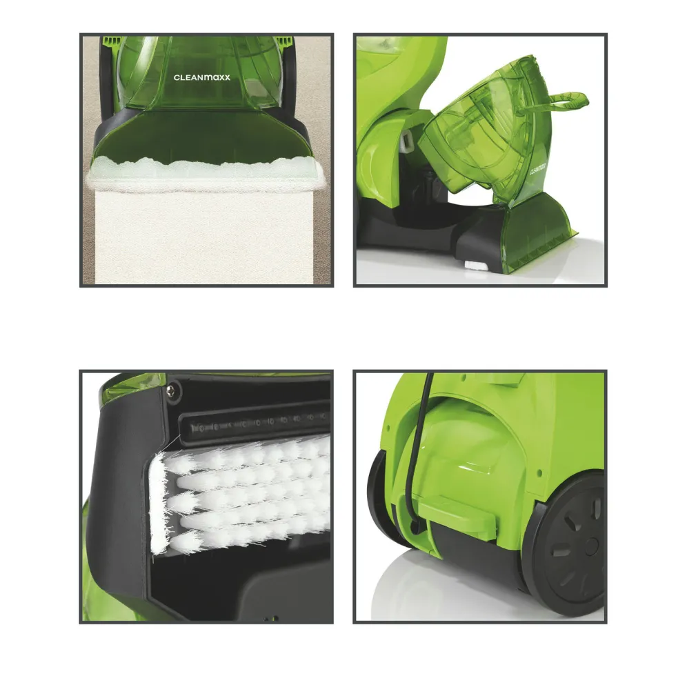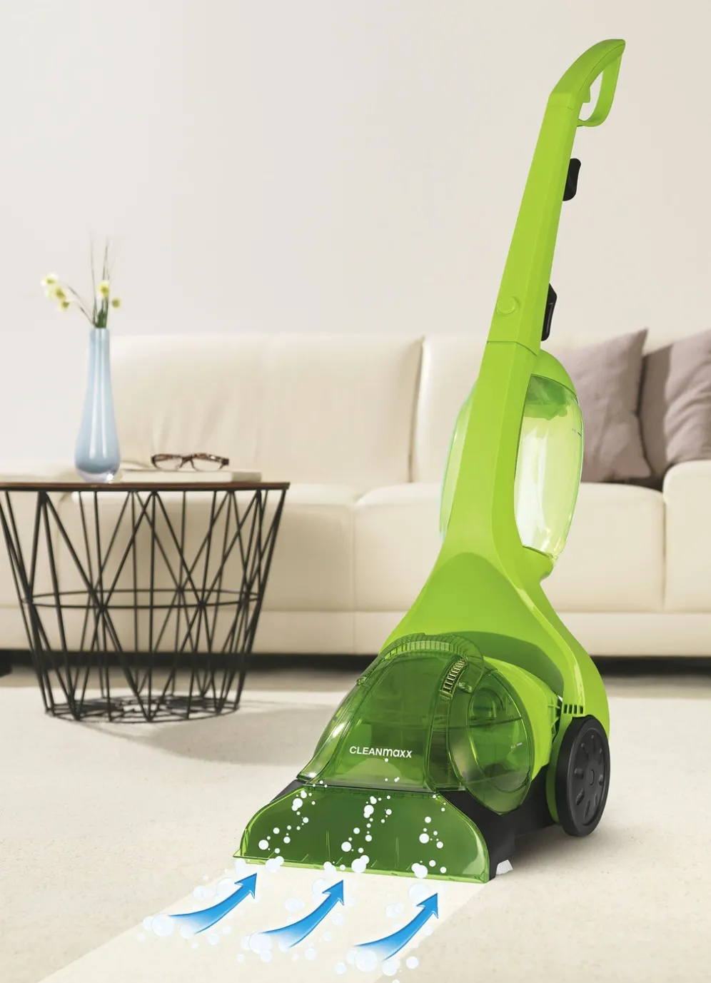 Teppichreiniger – entfernt Verschmutzungen und verleiht Ihrem Teppich neue Frische. Einfache Anwendung. Spart Zeit und Aufwand. Das Wasser wird gleich wieder aufgesaugt und der Teppich trocknet schneller. Kompakt und platzsparend. Pedal zum Kippen des Geräts, erleichtert das Ziehen.