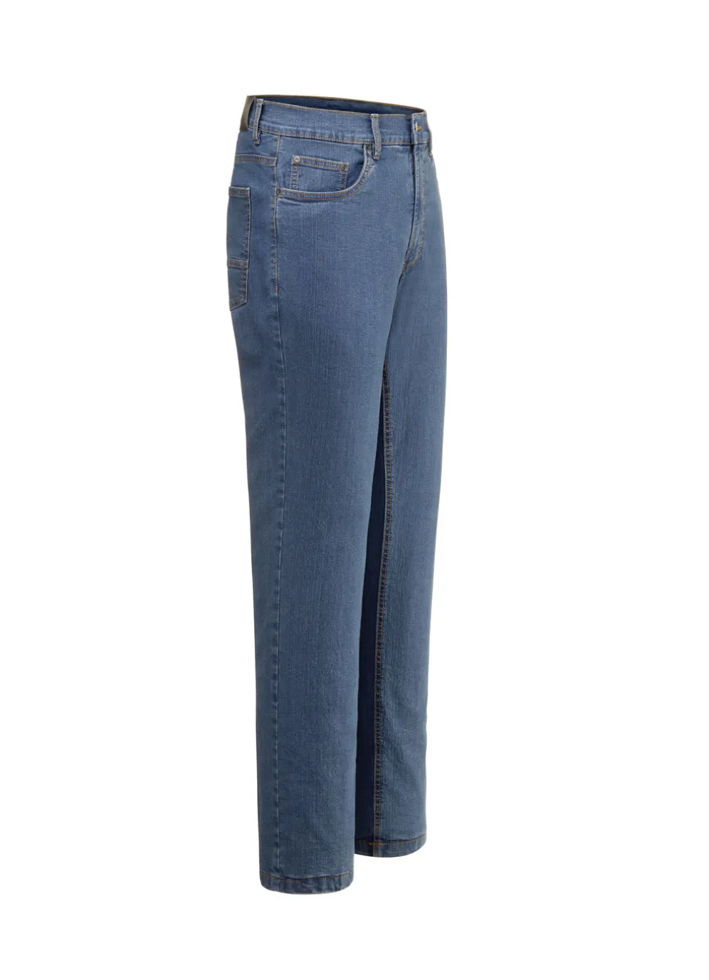 Thermojeans mit Seitentaschen und Kleingeldtasche mit Nietenzier, aufgesetzten Gesäßtaschen mit Ziersteppung sowie Jeanssattel.
