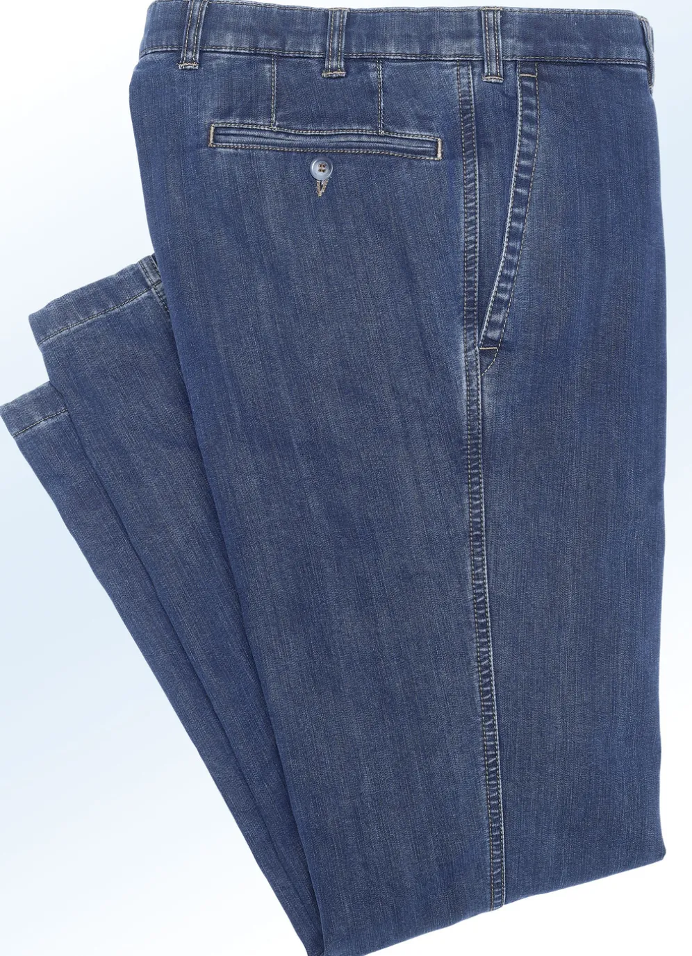 Schicke Thermojeans mit Dehnbund, Bundübertritt, Seitentaschen sowie Gesäßpaspeltaschen mit Knopfverschluss.