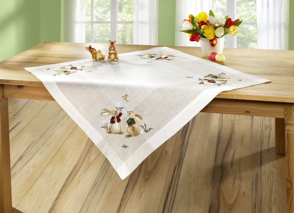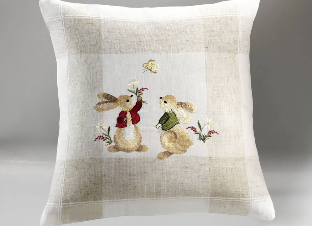 Eine herrliche Osterdekoration in Ihrem Zuhause ist diese stimmungsvolle Tisch- und Raumdekoration, die verspielte Häschen zeigt. Kissenbezug mit Reißverschluss ausgestattet.