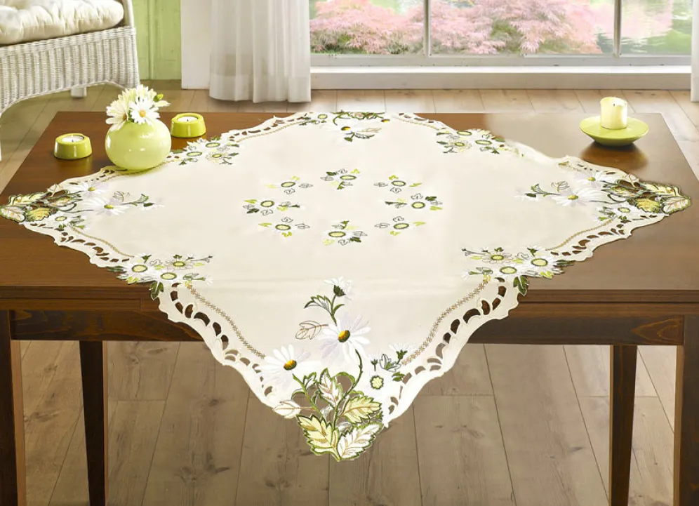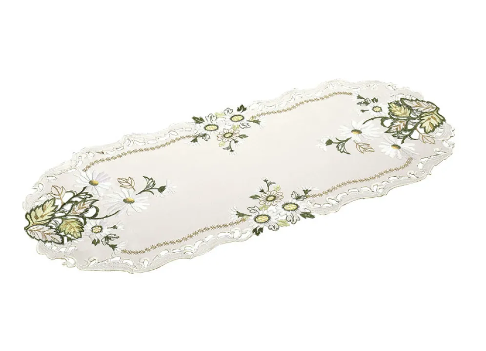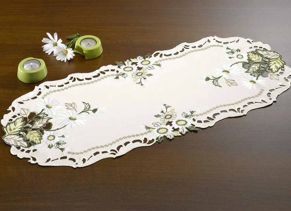 | Size | 100 (Läufer, 30x 45 cm), 101 (Läufer, 30x 70 cm), 102 (Läufer, 40x 90 cm), 103 (Läufer, 40×140 cm), 104 (Tischband, 20×160 cm), 185 (Tischdecke, 85x 85 cm), 190 (Tischdecke, 110×110 cm), 300 (2 Deckchen rund, ø 20 cm) |