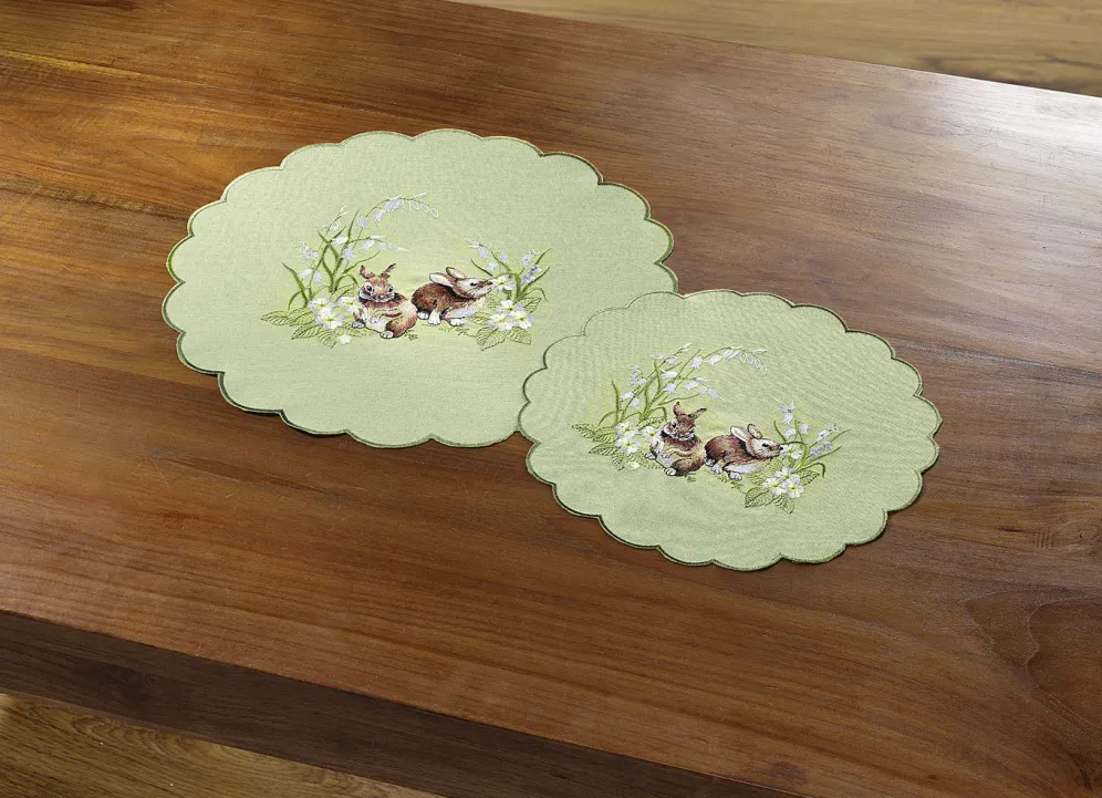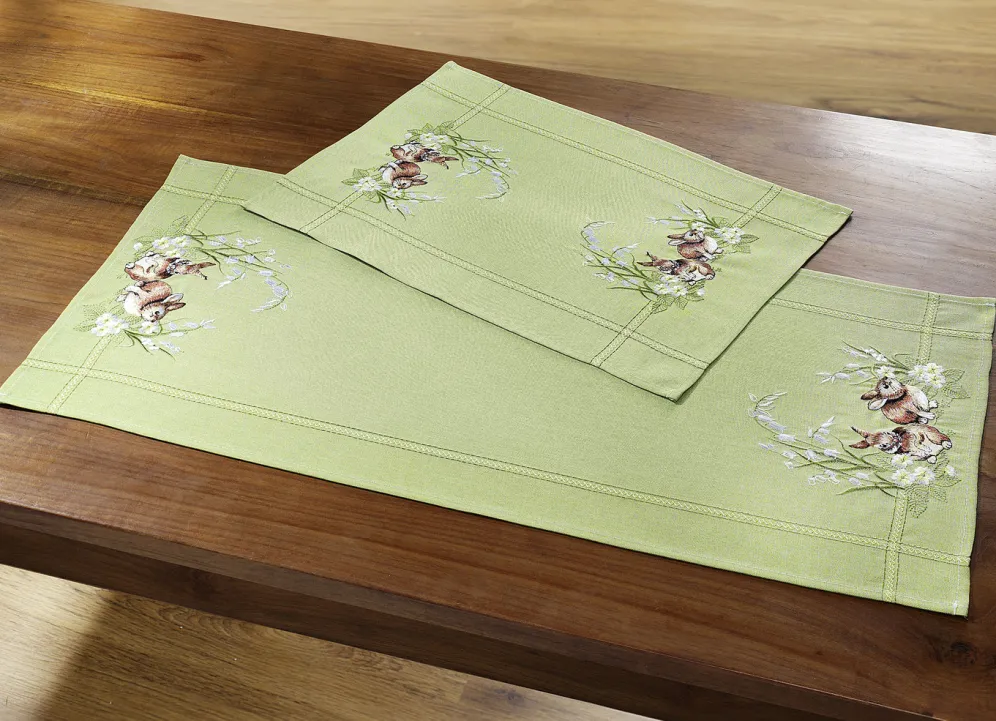 Tisch- und Raumdekoration in Größe 101 (Deckchen, 35/ 50 cm) und in Grün.