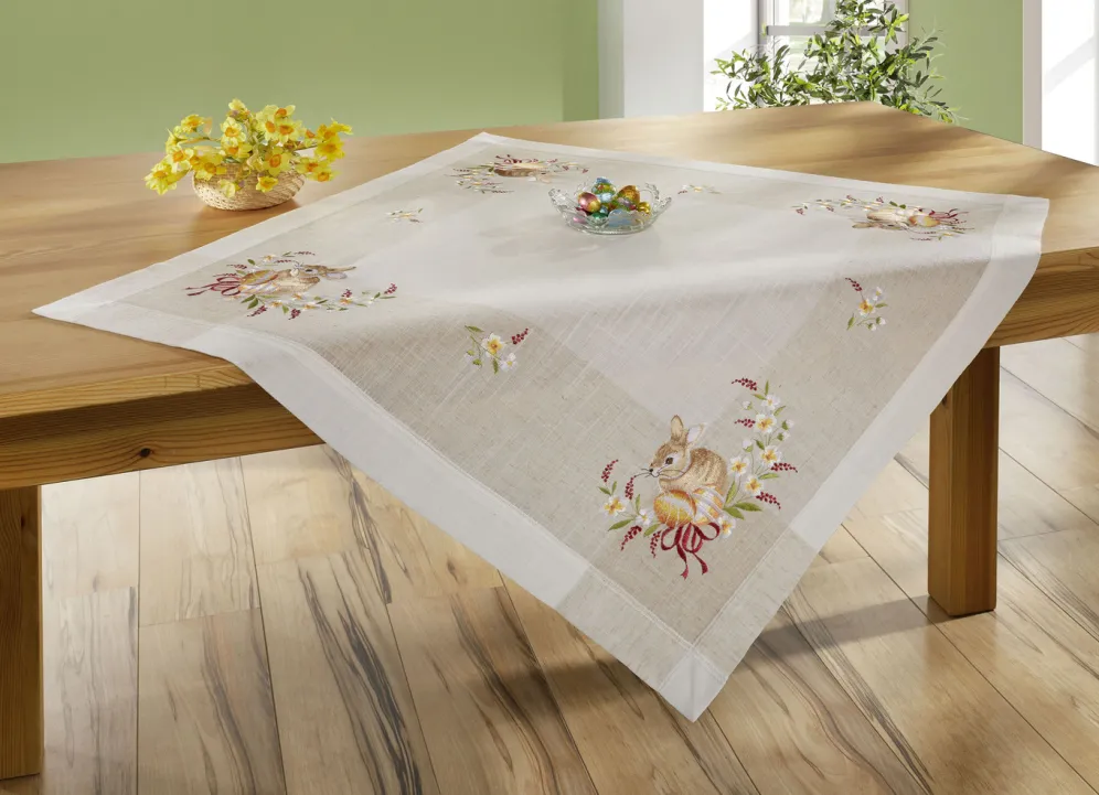 Ein niedlicher Hingucker ist diese schöne Tisch- und Raumdekoration in Leinenoptik, die mit den drolligen Hasen für eine gemütliche Atmosphäre in der Osterzeit sorgt. Kissenbezug mit Reißverschluss.