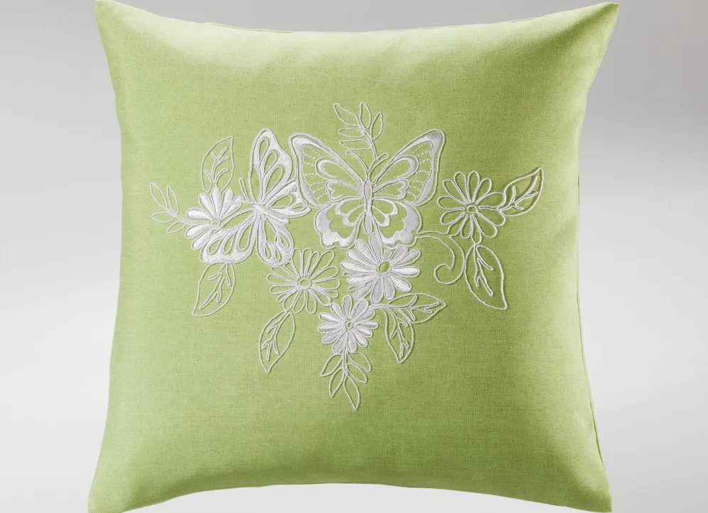 Einfach perfekt für Ihr Zuhause sind diese hübschen Wohnaccessoires mit detailliert ausgearbeiteten, gestickten Schmetterlingen und Blumen. Die eingearbeiteten Durchbrüche lassen das Dessin noch besser zur Geltung kommen. Kissenbezug mit praktischem Reißverschluss.