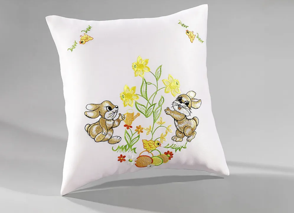 Mit dieser fröhlichen Tisch- und Raumdekoration ist Ihnen eine entzückene Ostertafel garantiert. Kissenbezug mit Reißverschluss. Waschbar bis 40 °C.