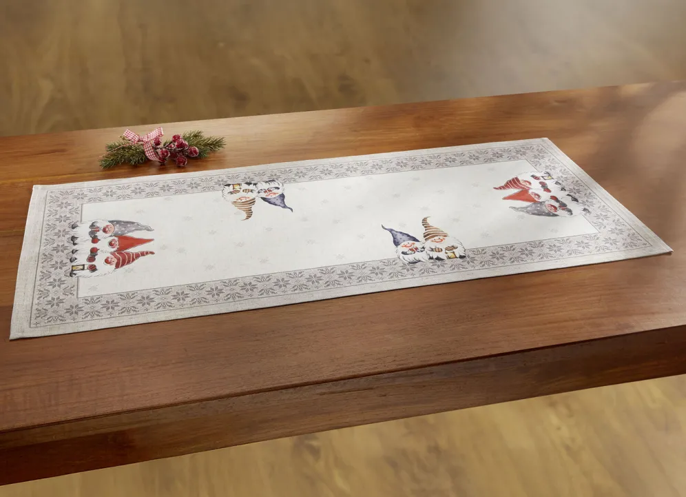 Tisch- und Raumdekoration mit Wichtelmotiven in Größe 150 (Läufer, 40x 90 cm) und in Multicolor.