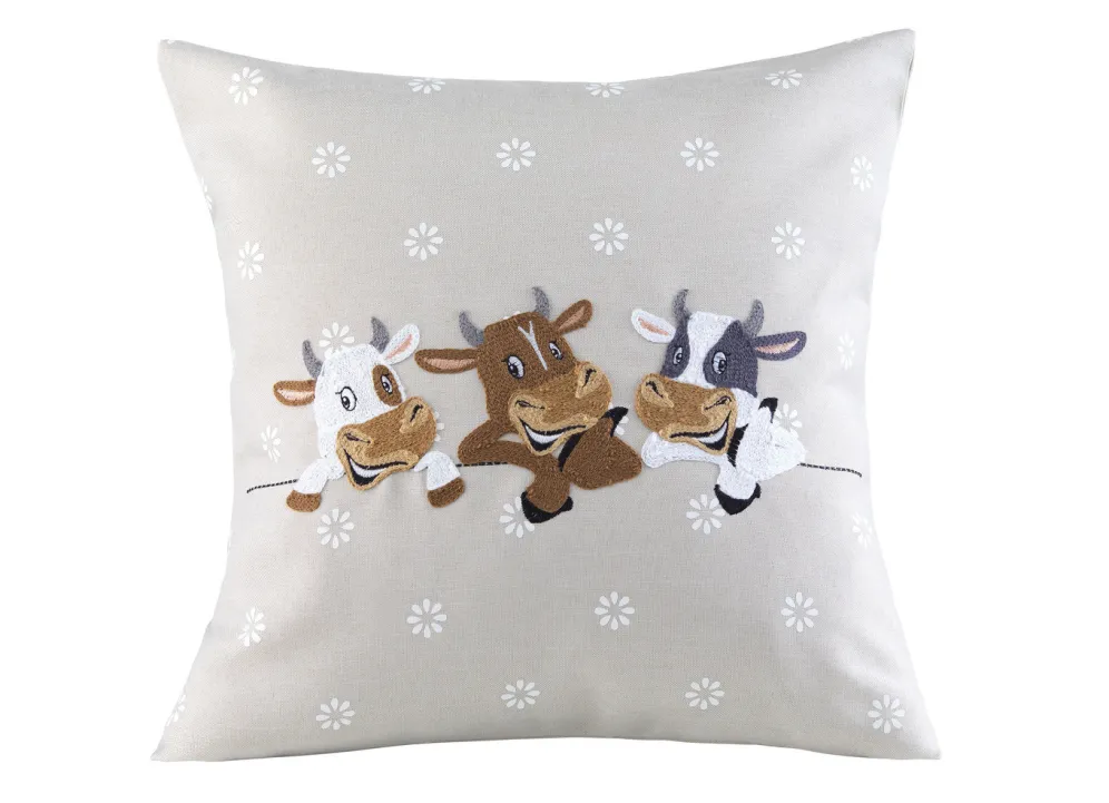 Die lustigen Kühe auf diesen wunderschönen Wohnaccessoires sorgen im Nu für gute Laune. Die aufwendig gearbeitete Stickerei macht die Kühe zu einem besonderen Hingucker. Kissenbezug mit praktischem Reißverschluss. Die Qualität: 100% Polyester. Waschbar bis 30 °C.