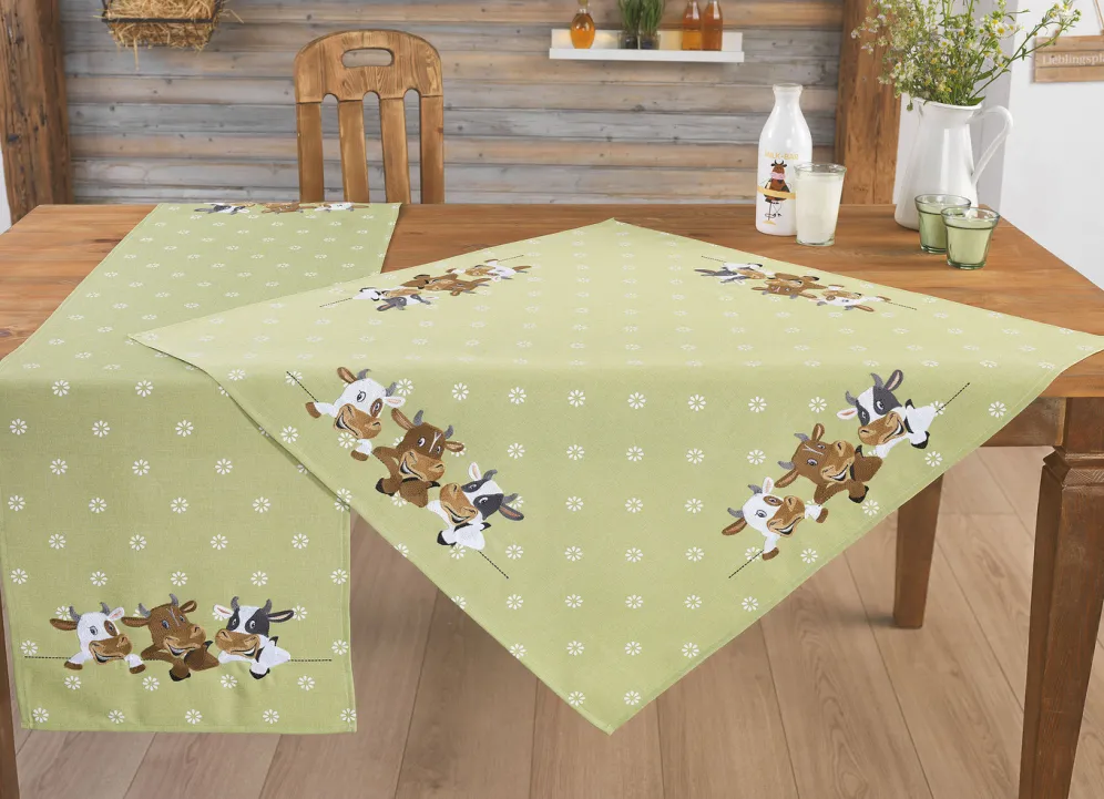 | Size | 130 (2 Platzsets, 35x 50 cm), 140 (Läufer, 40x 85 cm), 145 (Läufer, 40×140 cm), 185 (Tischdecke, 85x 85 cm), 404 (Kissenbezug, 40x 40 cm) |