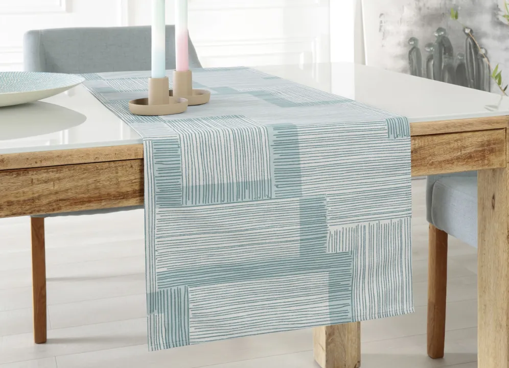Tischdecke mit Fleckschutz-Ausrüstung in Größe 105 (Läufer, 40/140 cm) und in Aqua.