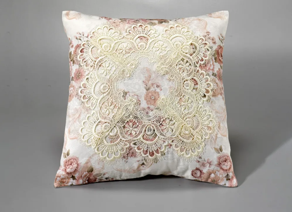Tischdecke von Schäfer mit feinster Macramé-Spitze in Größe 404 (Kissenbezug, 40/ 40 cm) und in Bunt.