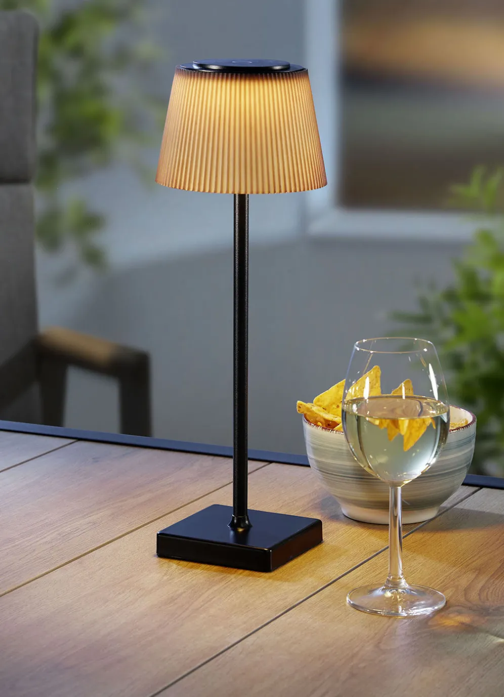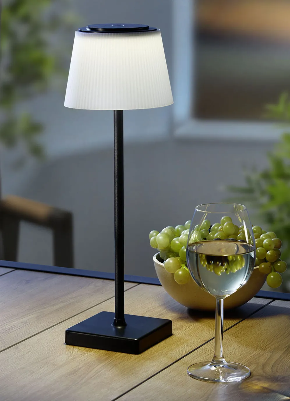 Aus mattschwarzem Metall und mit einem raffinierten Lampenschirm aus Kunststoff gefertigt, findet diese Tischleuchte mit Sicherheit ein geeignetes Plätzchen. Mit stufenlosem Touchdimmer, fixierbarem Farbwechsel und Memoryfunktion. Inklusive USB-Ladekabel. Maße:Höhe 38 cm, ø Schirm 13 cm.