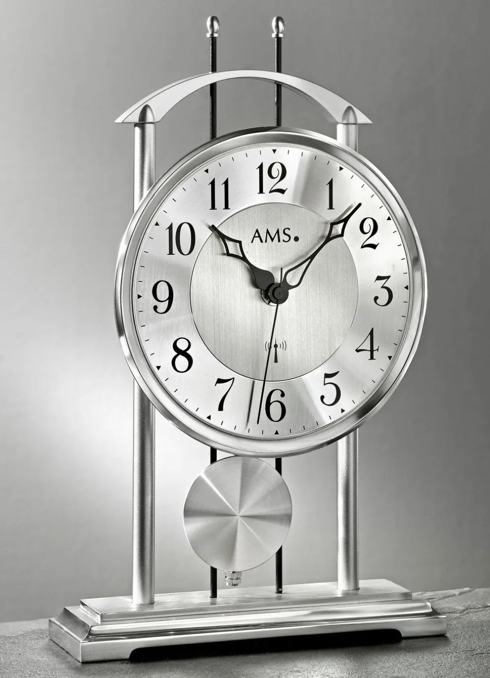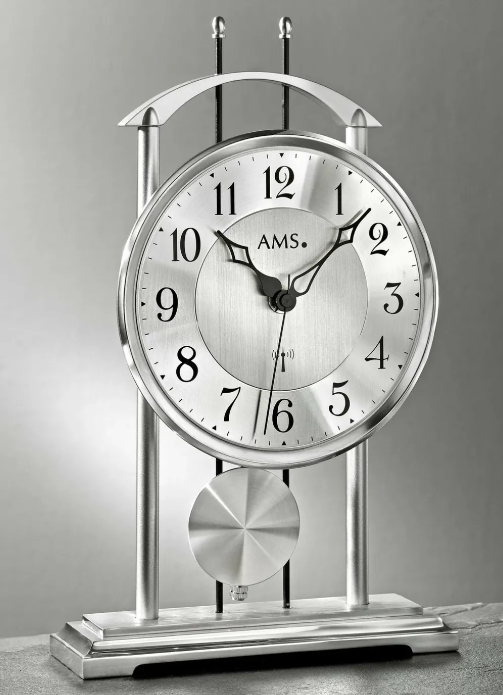 Tischuhr mit Funkwerk in Silber.