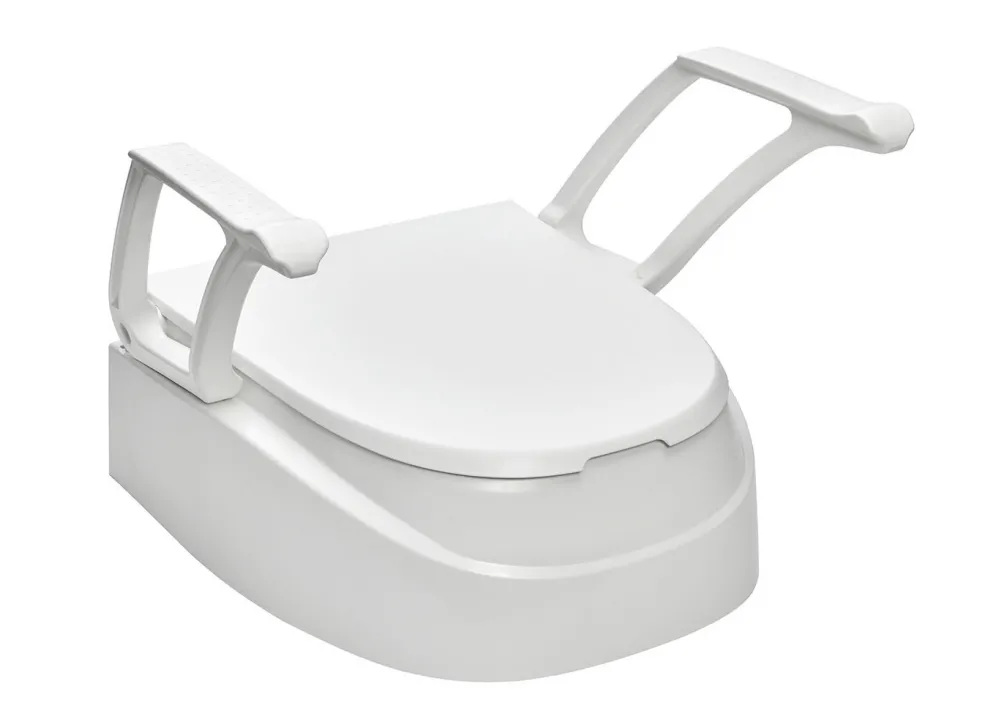 Toilettensitzerhöhung mit Armlehnen in Weiss.