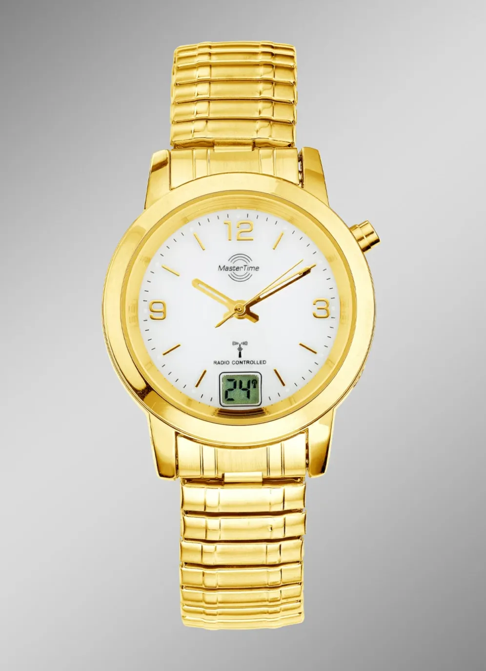 Die elegante und praktische Funk-Damenuhr der Marke Master Time zeigt Ihnen immer die genaue Zeit an.