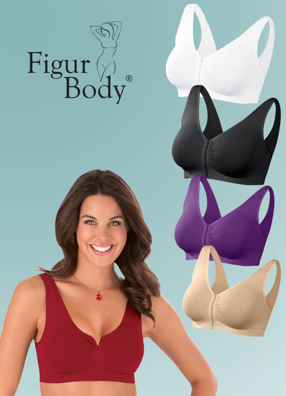 Dieser angenehm leichte BH bietet durch die fast nahtlose Verarbeitung und dem hautschmeichelnden Mikrofaserstoff den idealen Tragekomfort. Durch seine anschmiegsame Passform legt er sich wie eine zweite Haut um Ihre Brust. Noch mehr Halt versprechen die extra breiten & weichen Komfortträger, das breite Komfortband sowie die doppelt verstärkten Stellen im Vorderbereich. Der praktische Vorder-Reißverschluss ermöglicht Ihnen ein einfaches An- und Ausziehen. Set besteht aus: 1x beige, 1x lila, 1x rot, 1x schwarz und 1x weiß. Qualität: Mikrofaserstoff 92% Polyamid, 8% Elastan. Gr: L (40/42), XL (44/46), XXL (48/50).