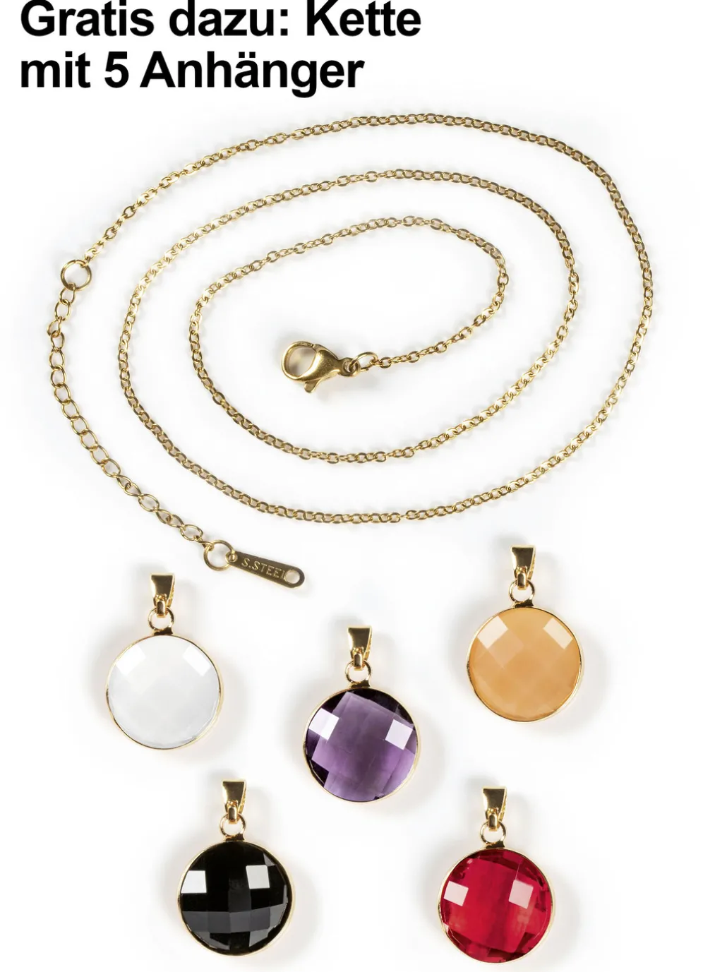 - Gratis dazu: Kette mit 5 Anhänger