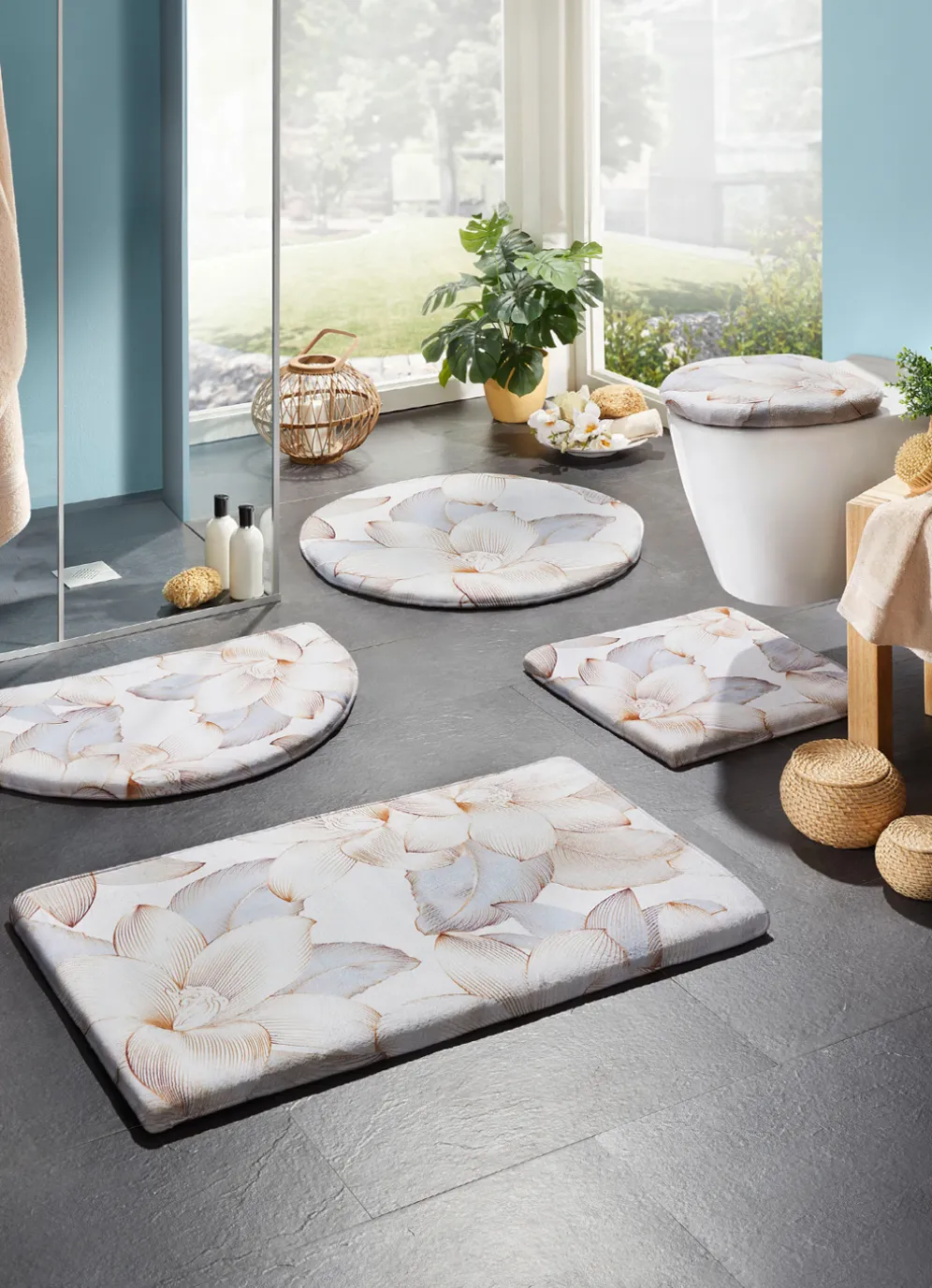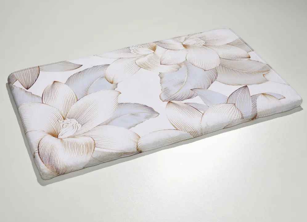 Diese traumhaft weiche, bedruckte Badgarnitur mit Bandeinfassung bringt mit den wunderschönen und edel gestalteten Blumen frischen Wind in Ihr Badezimmer. Höhe: 10 mm. Mit rutschhemmend beschichteter Rückseite.