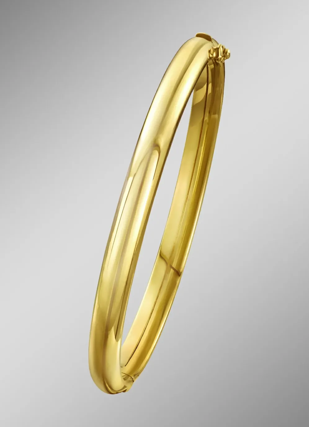 Traumhafter Armreif in Gold 585/- fein oder Gold 333/- fein. Für Frauen, die es puristisch und elegant mögen. Ein Schmuckstück von lang anhaltendem Wert. Die perfekte Harmonie von Modernität und Zeitlosigkeit lässt dieses Armreif zu einem Highlight werden. Dieses edle Schmuckstück verzaubert mit hinreißender Schönheit und faszinierend schimmerndem Glanz. So sorgt es für Aufsehen in jeder Kulisse und seine Besitzerin kann sich der Aufmerksamkeit ihrer Betrachter gewiss sein. Der raffinierte Sicherheitsverschluss lässt sich einfach öffnen und fügt sich harmonisch in das Gesamtbild des Armreifes ein. Der Armreife ist ca. 6 mm breit und hat einen innen Durchmesser von ca. 62 mm.