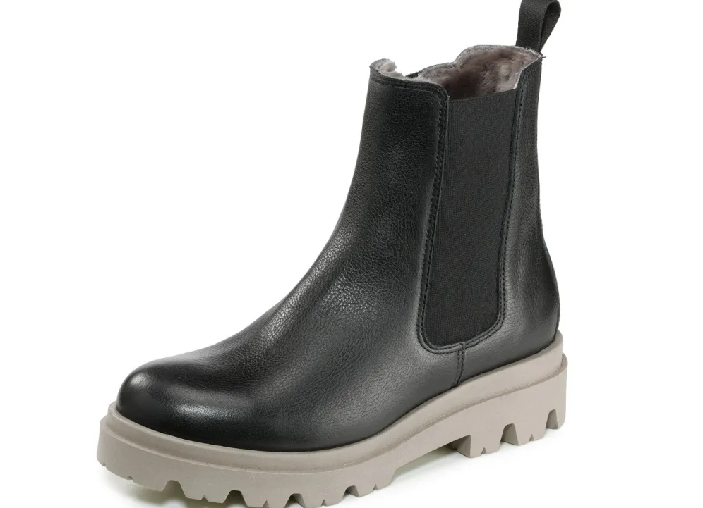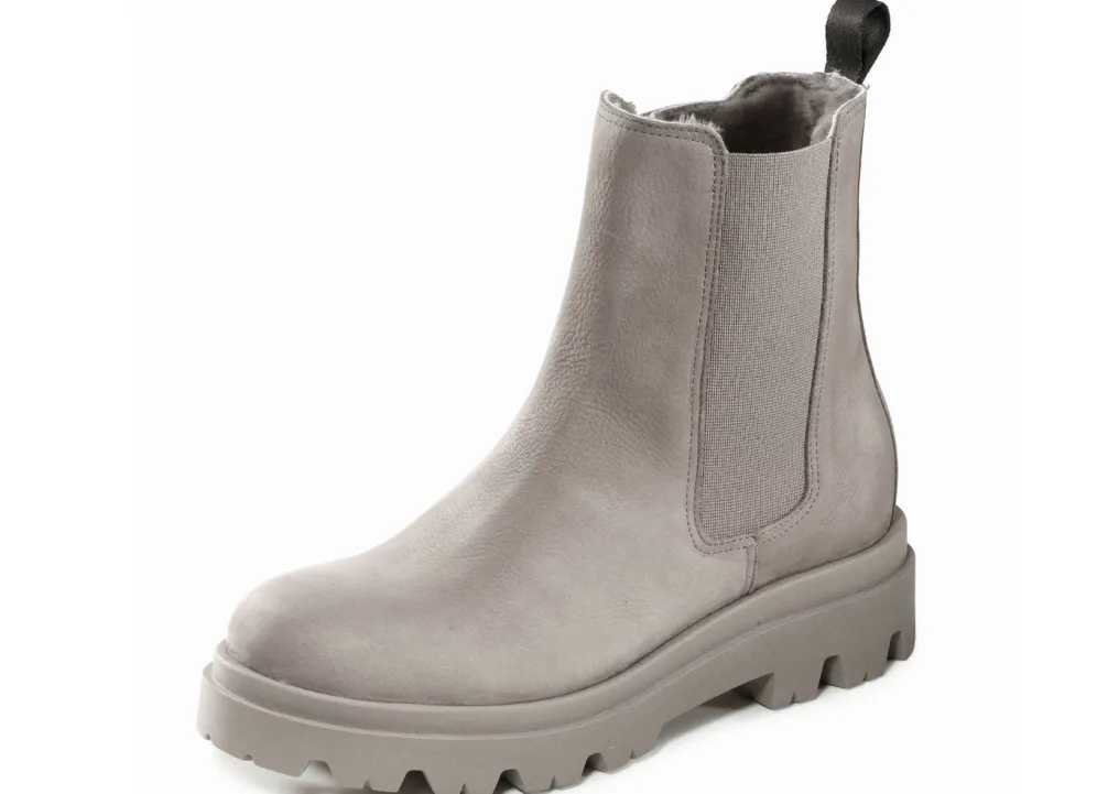 Trendige Stiefelette mit kuscheligem Lammfellfutter in Beige und in Größe 38.