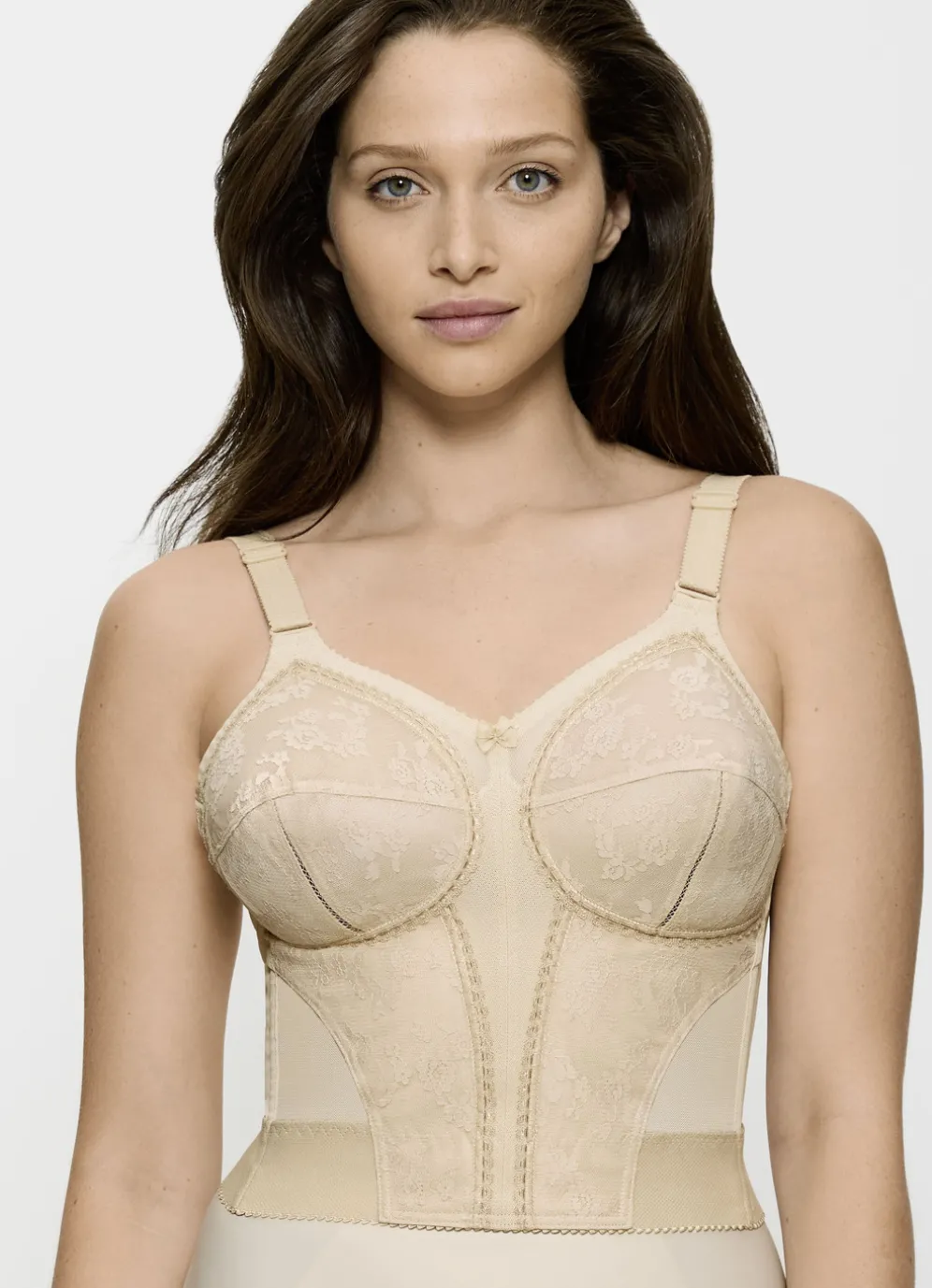 Langer „Triumph-Doreen“-BH mit Spitze im verstärkten Vorderteil, seitlichen Stützstäbchen sowie verstellbaren Stretchträgern.