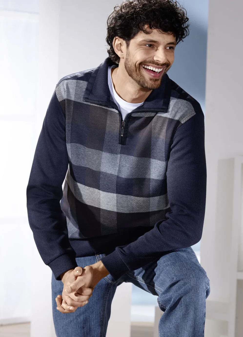 Troyer mit kurzem Reißverschluss in Marine Kariert und in Größe 46.