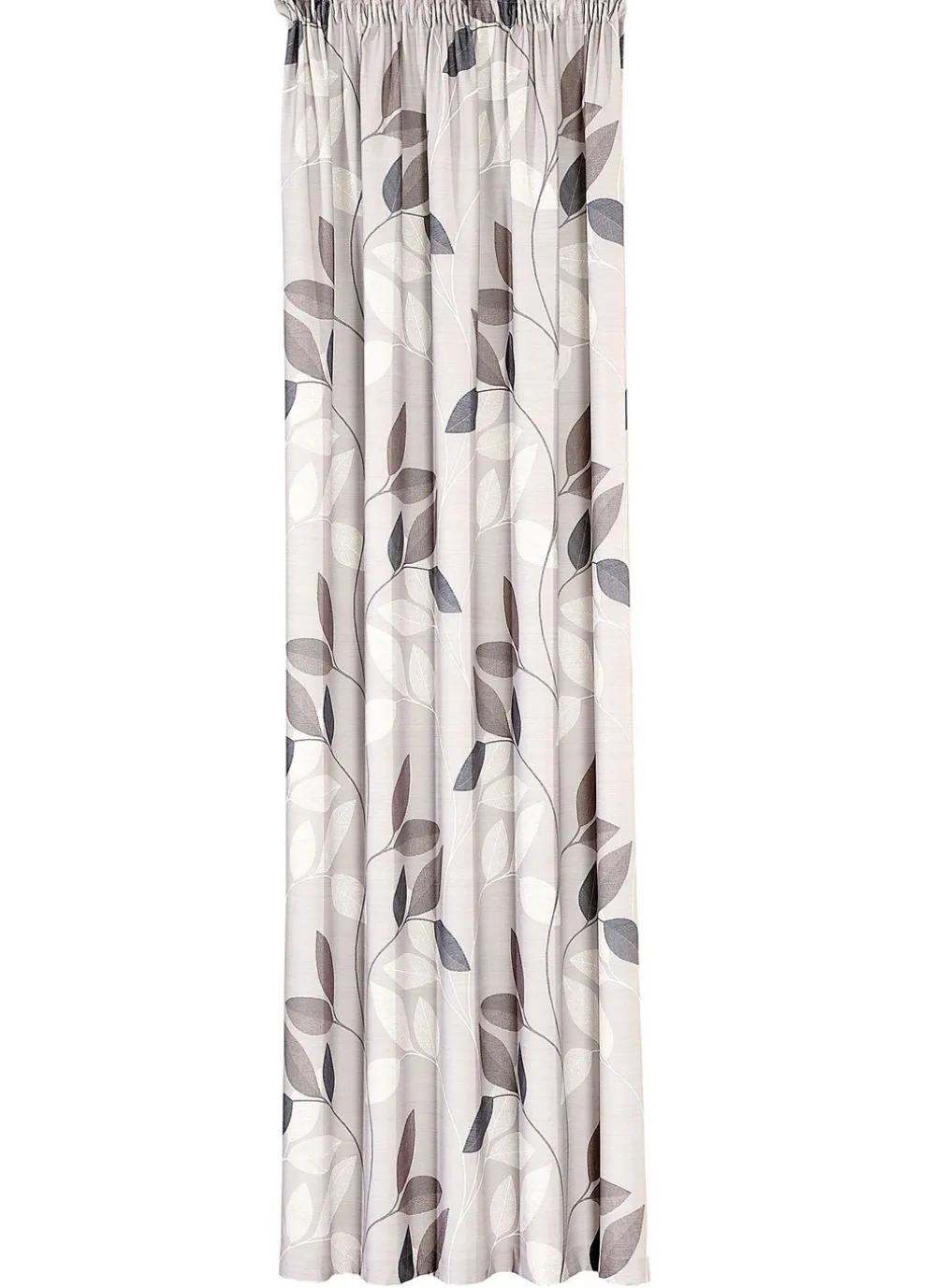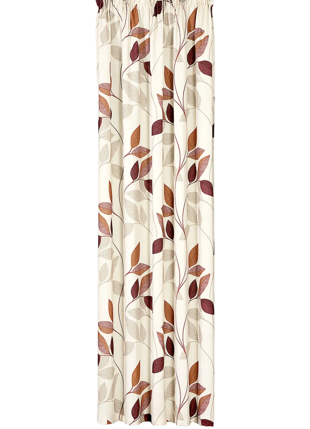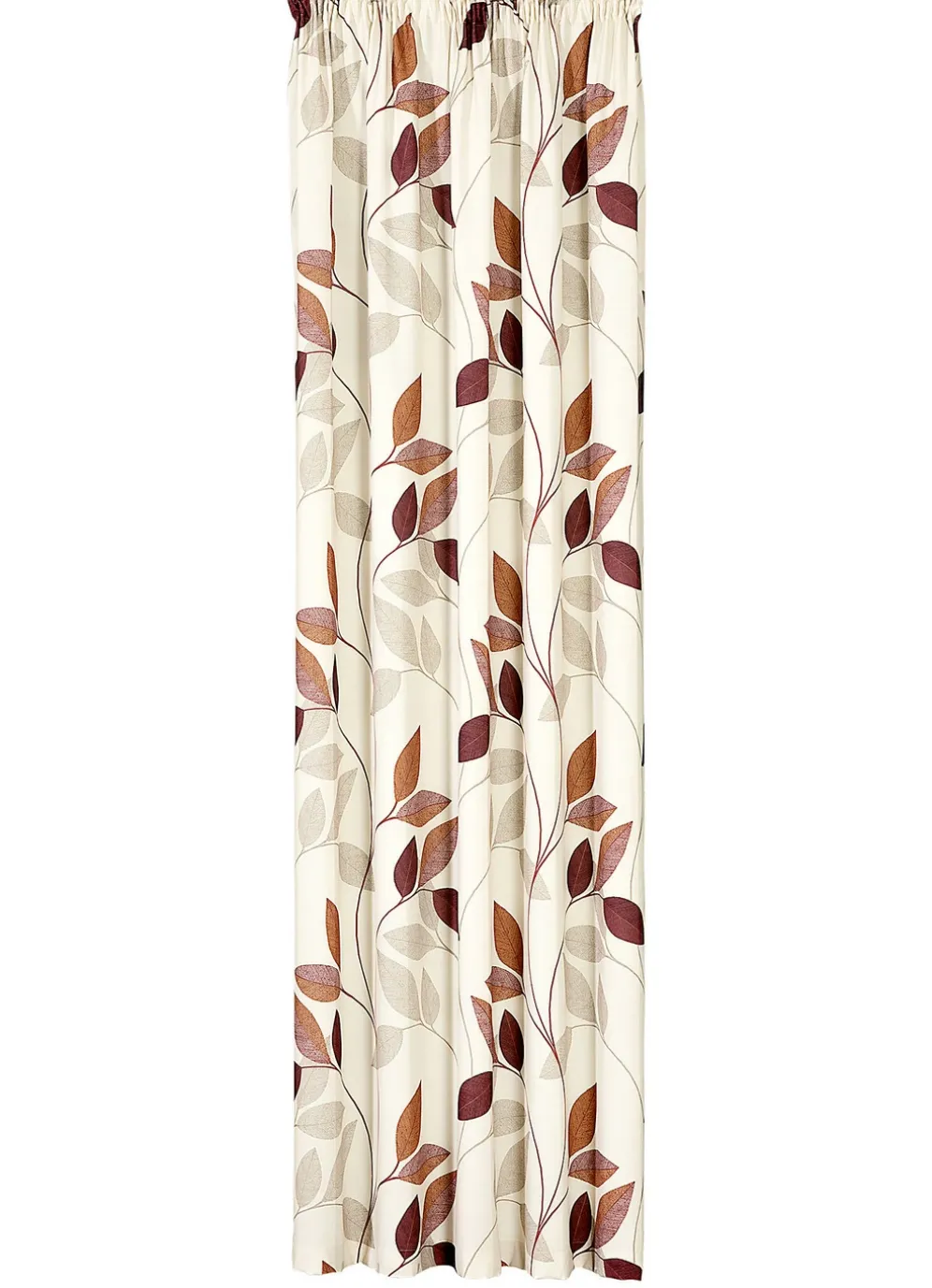 Natürliche Blätterranken in wohnlichen Farben sind auf dieser bedruckten Übergardine zu sehen. Mit Universalschienenband. Qualität: 100% Polyester. Maße: HxB