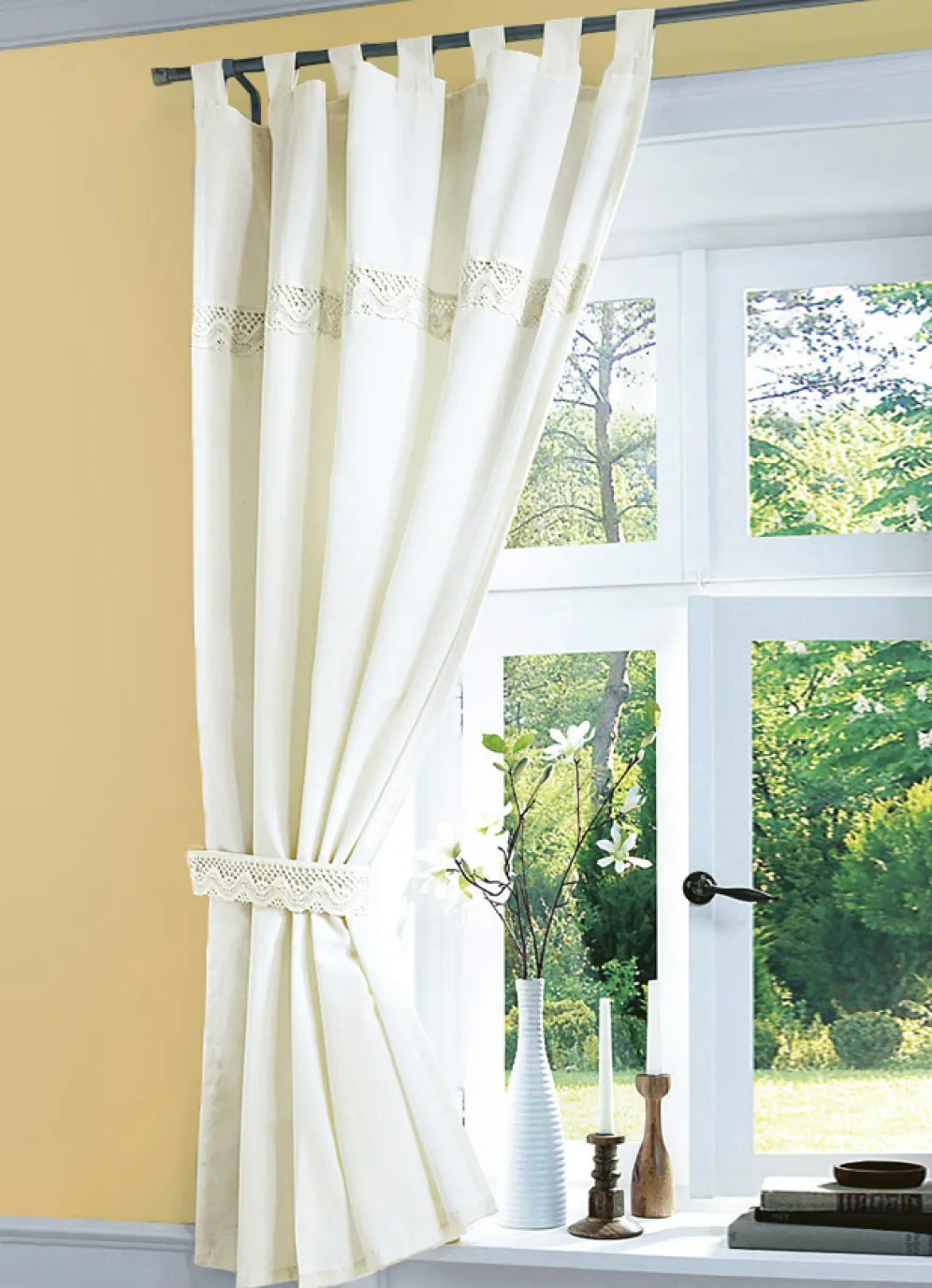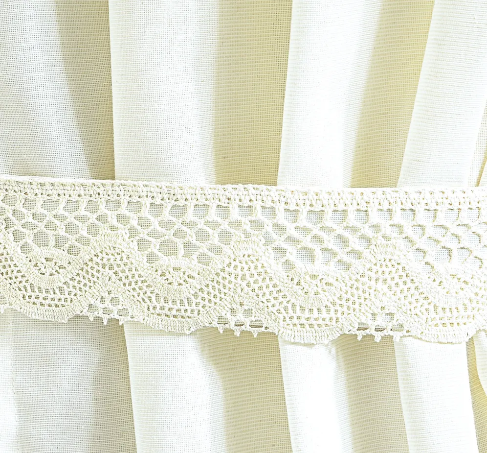 Übergardine mit aufgesetzter Häkelborte
