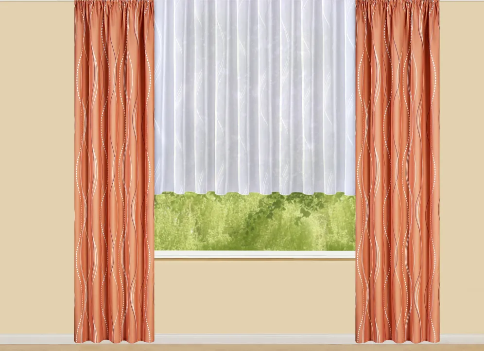 Übergardine mit Wellen-Dessin und Universalschienenband