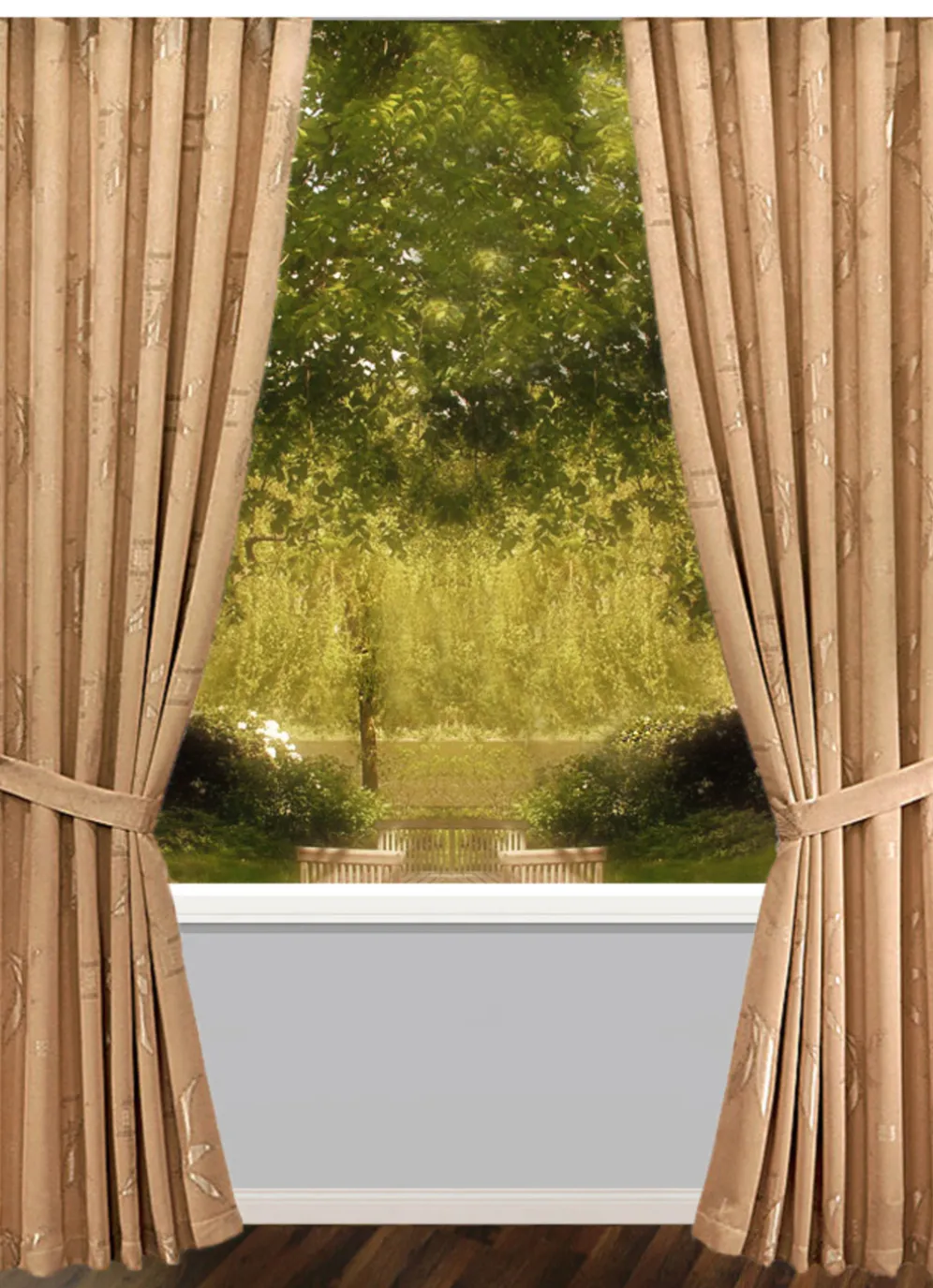 Übergardinen-Garnitur mit Universalschienenband in Größe 899 (2er-Pack Raffhalter, 80 cm) und in Sand.