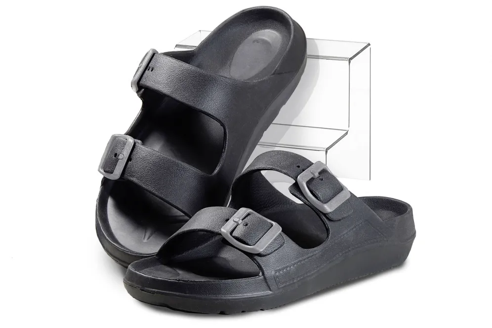 Diese ultraweichen Sandalen sind besonders flexibel und bieten gleichzeitig einen sehr guten Tragekomfort. Passen sich Ihrer Fußform an und unterstützen die Fußgewölbe. Die 3,5 cm dicke Sohle wirkt wie ein Stoßdämpfer für Ihre Gelenke. Gleichzeitig ist die Sohle wärme- und kälteisolierend. Ein Ausrutschen wird durch die geriffelte Sohle verhindert. Qualität: schadstofffreies und antibakterielles EVA