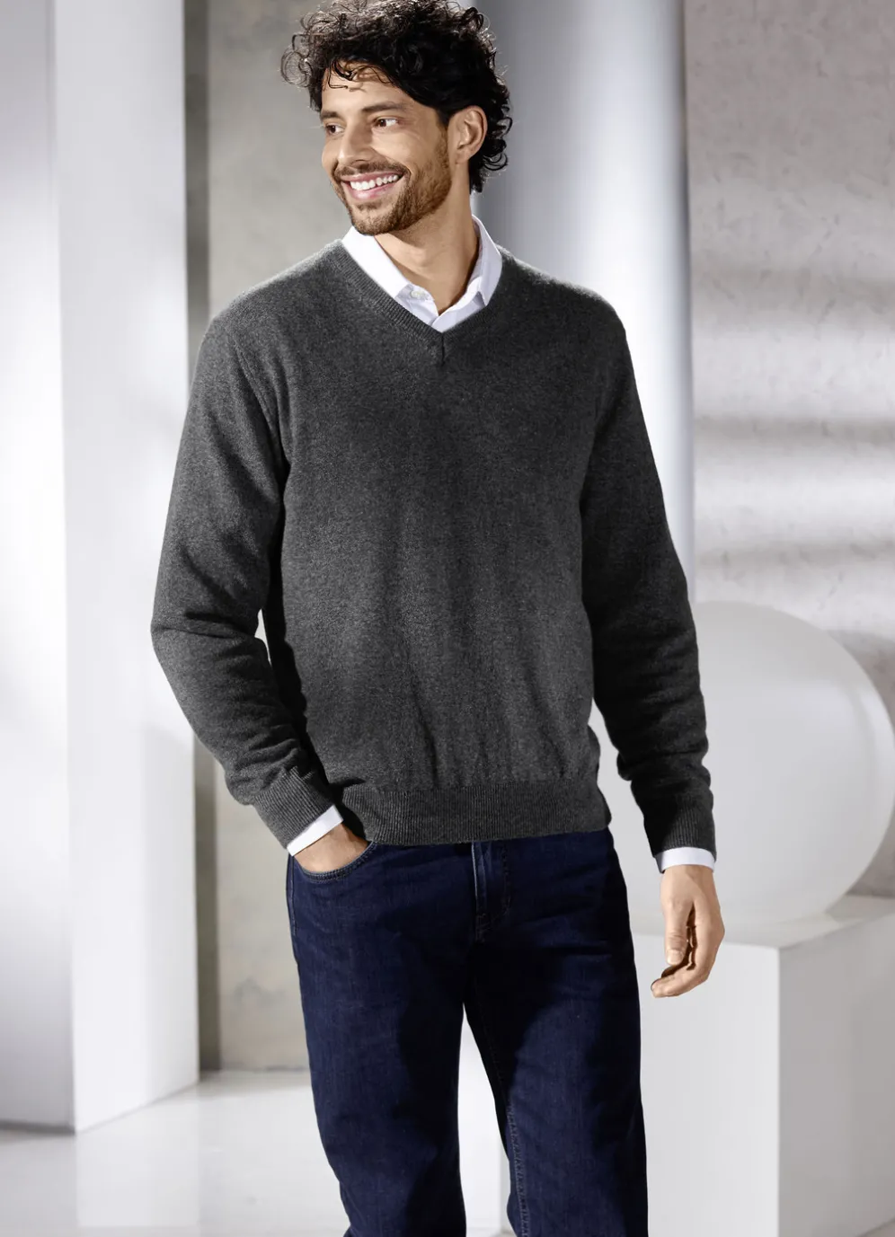 Ein echtes Lieblingsstück ist dieser wunderbar weiche, unifarbene V-Pullover mit langen Ärmeln und Rippenstrick-Abschlüssen.