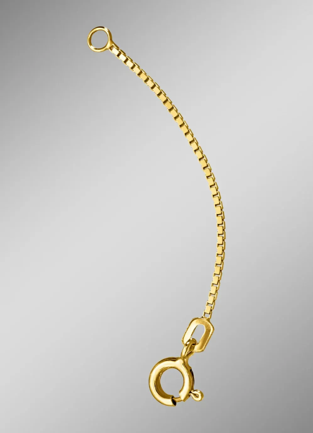 Edle Venezia-Verlängerungskette aus Gold 585/- fein oder aus Gold 333/- fein. Das 1 mm breite Kettchen mit Federring und Öse ist in verschiedenen Längen erhältlich.