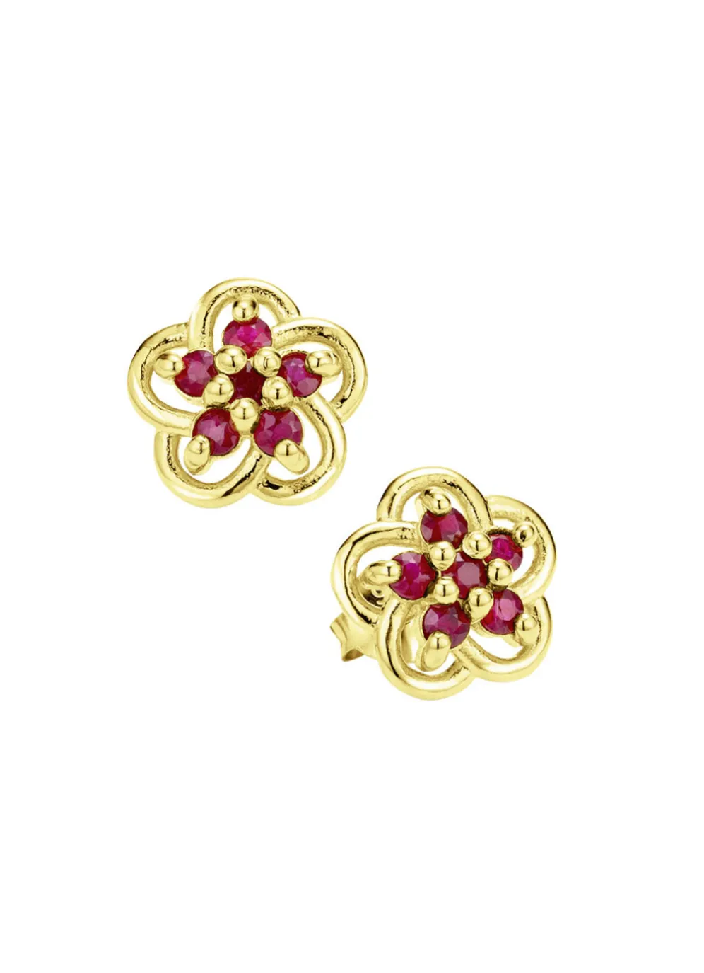 Vergoldete Ohrstecker mit echt Rubin in der Legierung Silber 925/- fein.
