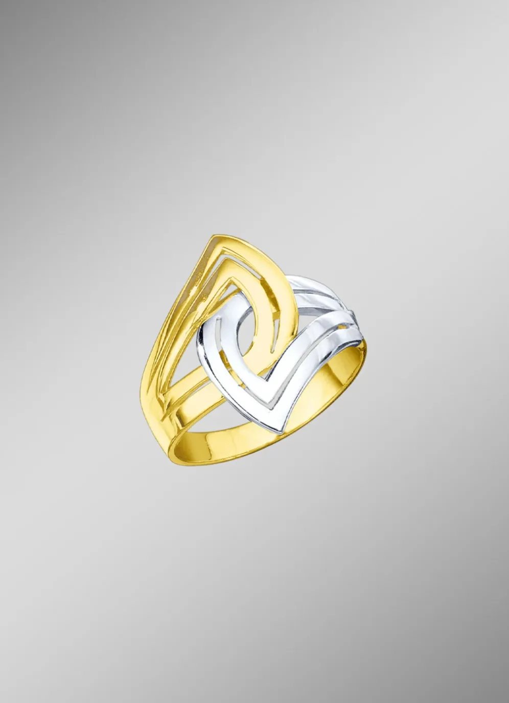 Verschlungener Damenring in Bicolor in der Legierung Gold 333/- fein und in Größe 160.