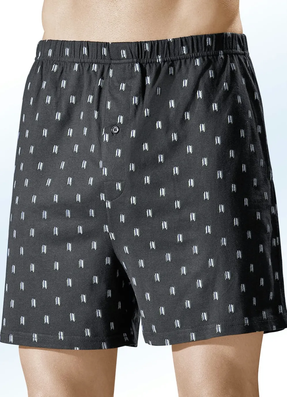 Allover dessinierte Boxershorts: Dehnbund, knöpfbarer Eingriff.