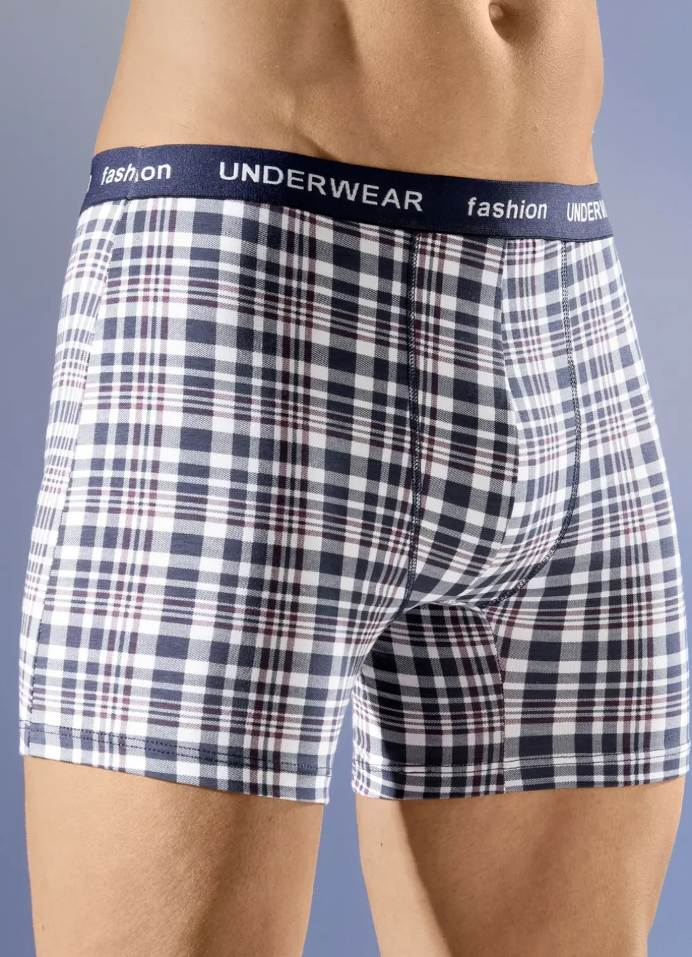 Viererpack Pants mit Elastikbund in 2X Marine-Weiss-Bordeaux, 2X Bordeaux-Weiss-Schwar und in Größe 4.