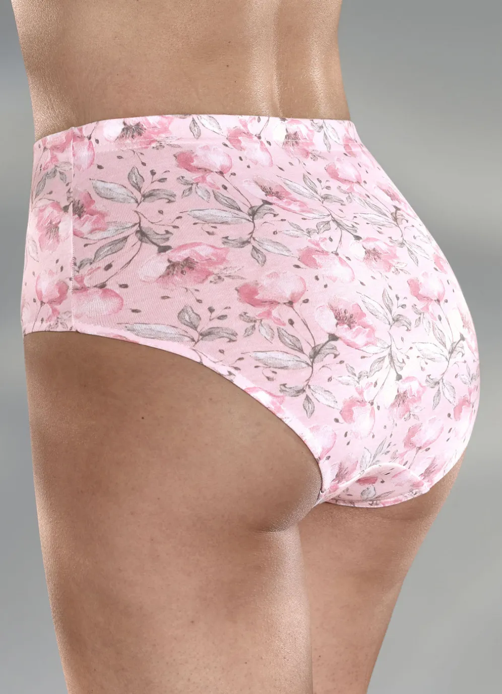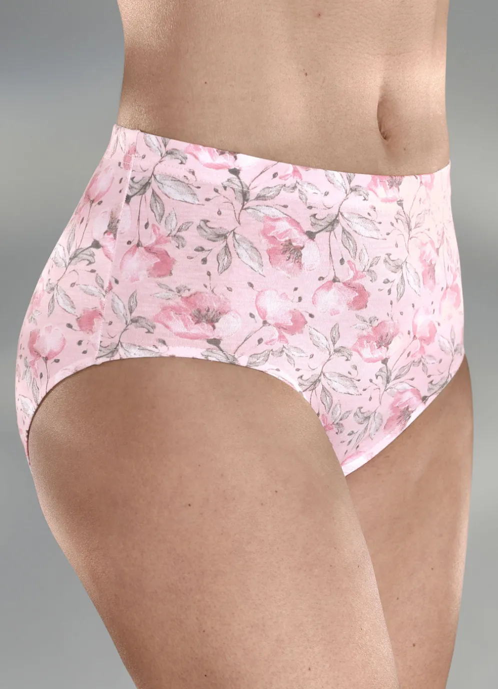 Roséfarbener Slip mit farbharmonischem Floraldruck sowie Gummizug im Bund.
