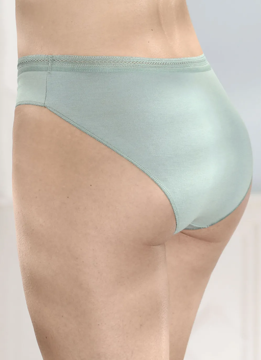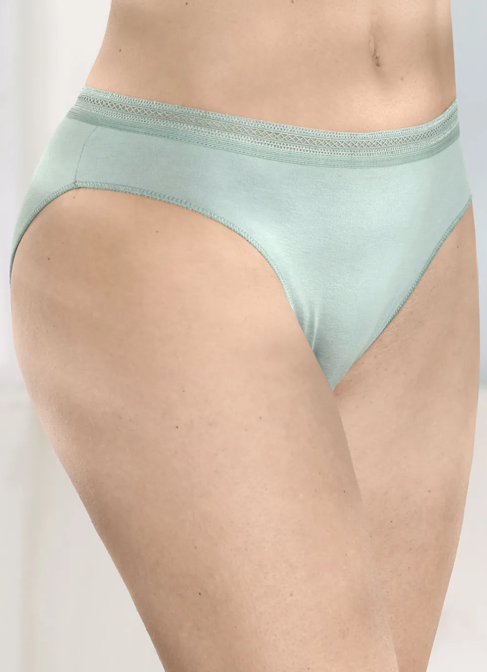 Viererpack Slips mit dekorativem Elastikbund in 2X Jade, 2X Weiss und in Größe 40.